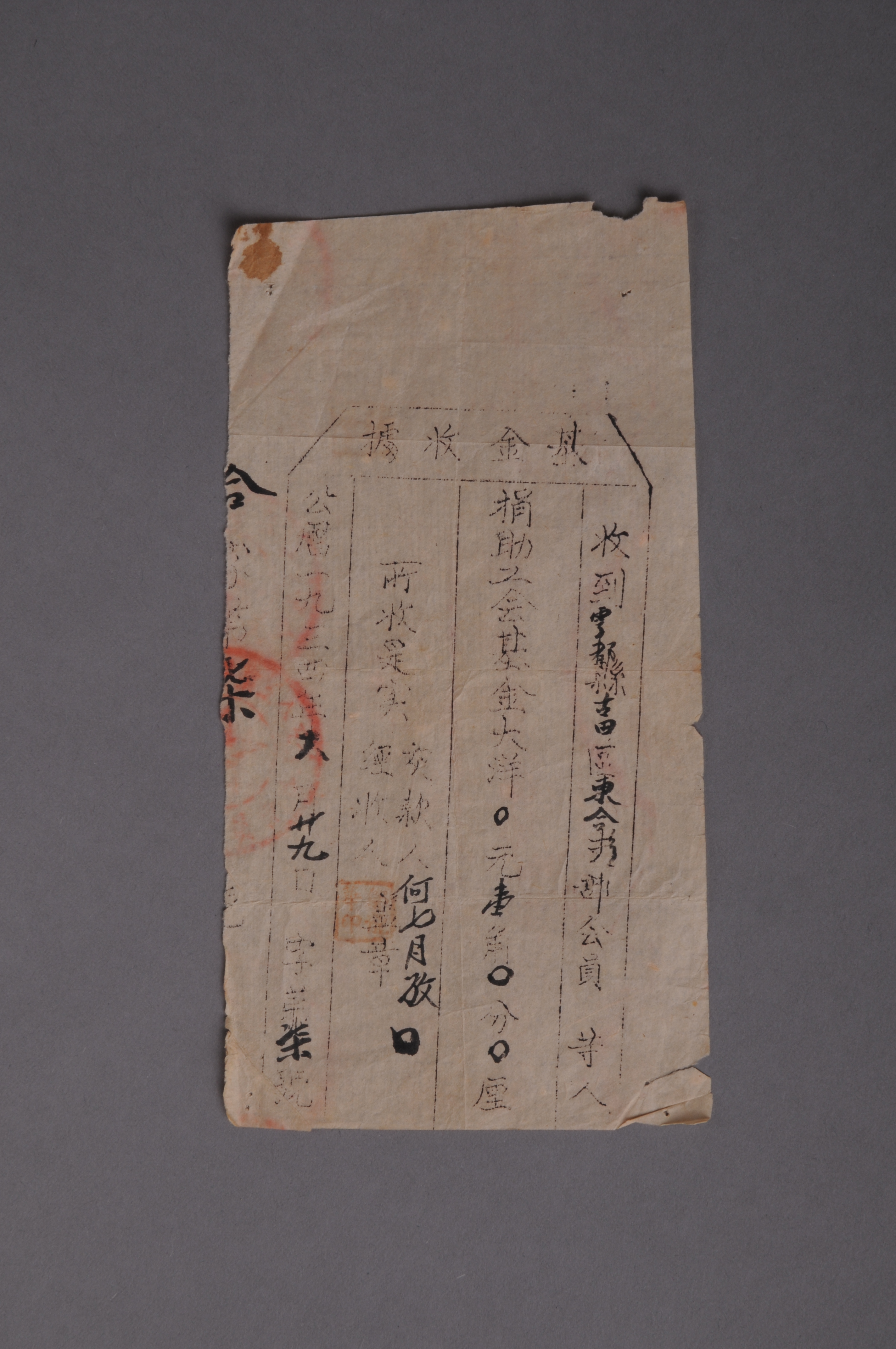 200403★1934年于都县古田区东合乡支部会员捐助工会会员何七月仔的基金收据