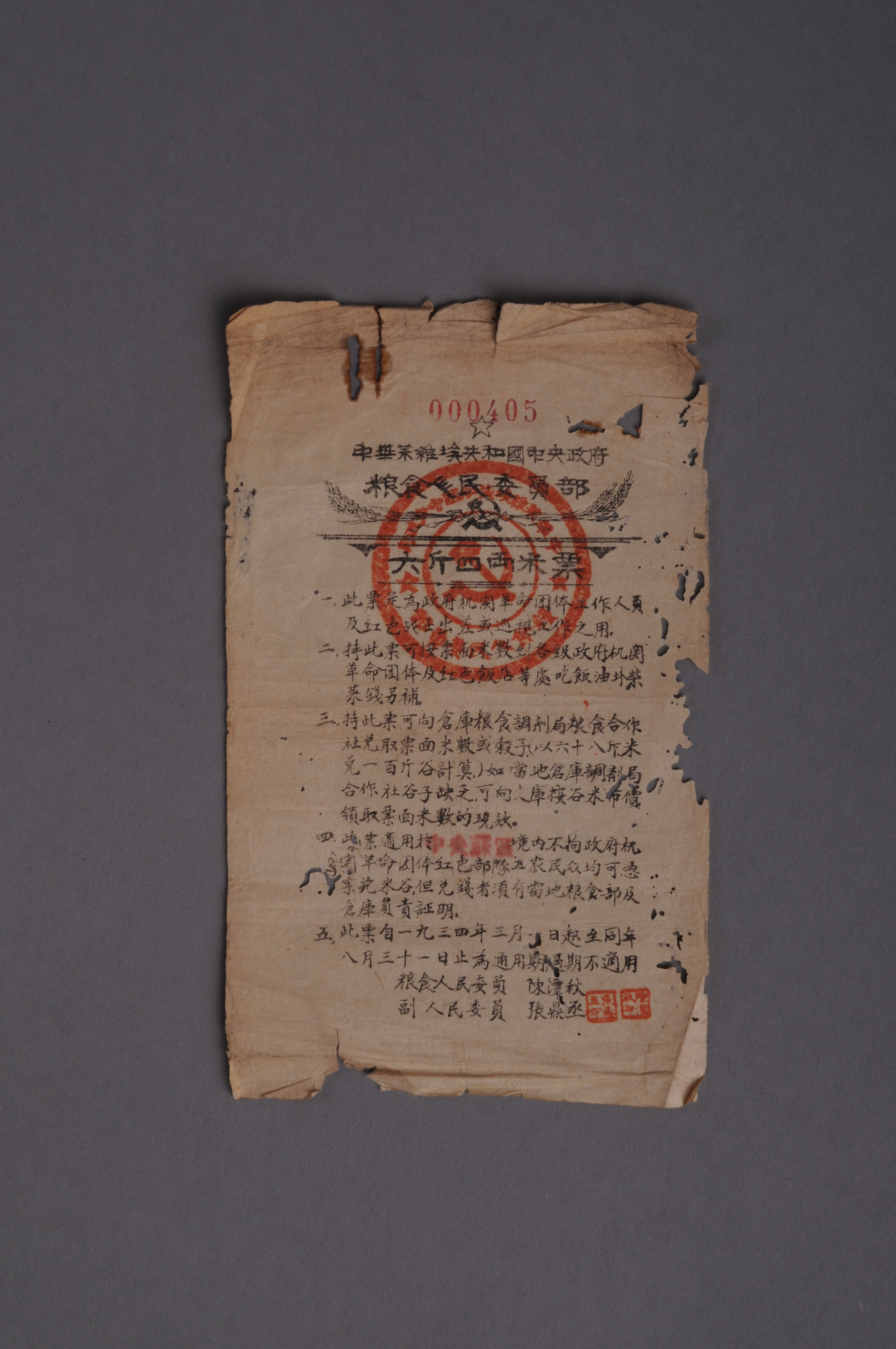 200902★1934年中华苏维埃共和国中央政府粮食人民委员部六斤四两米票