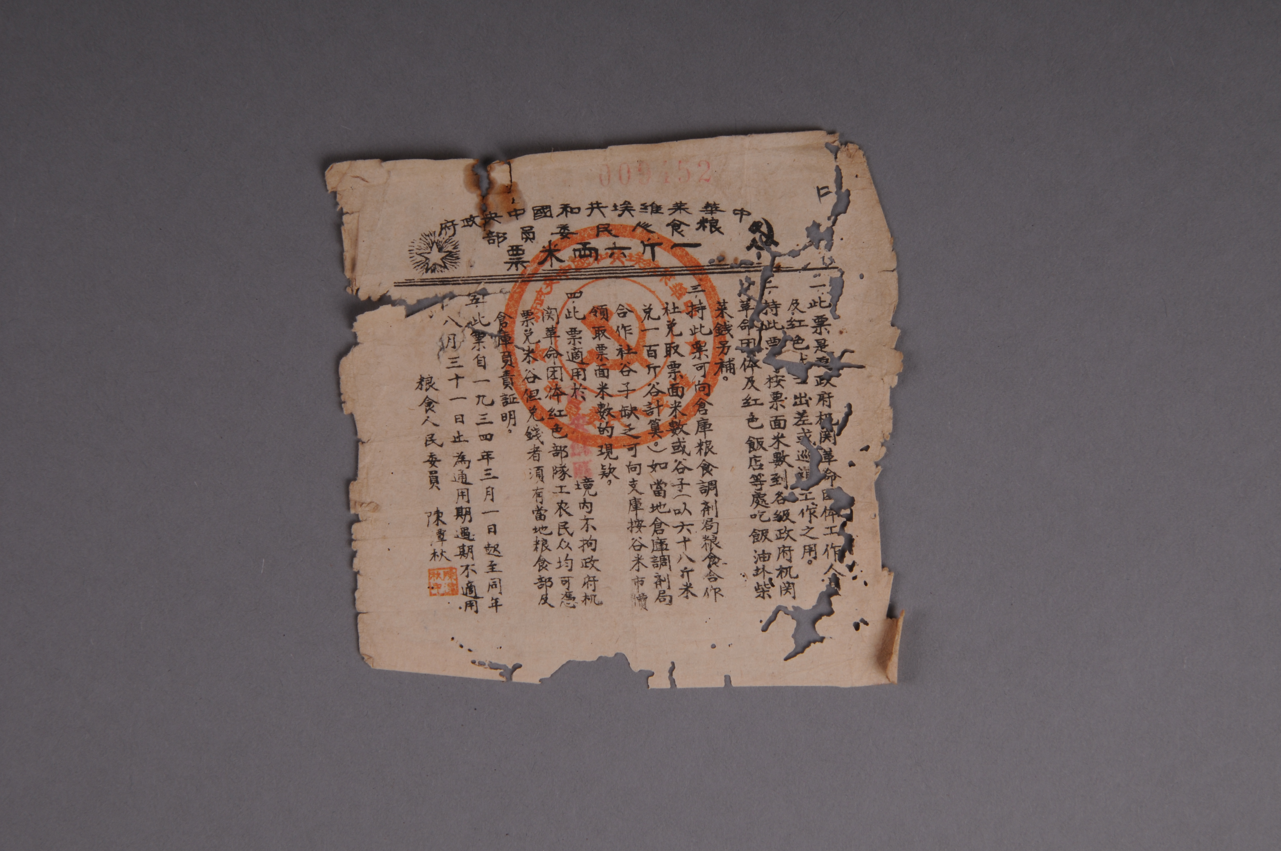 200904★1934年中华苏维埃共和国中央政府粮食人民委员部一斤六两米票