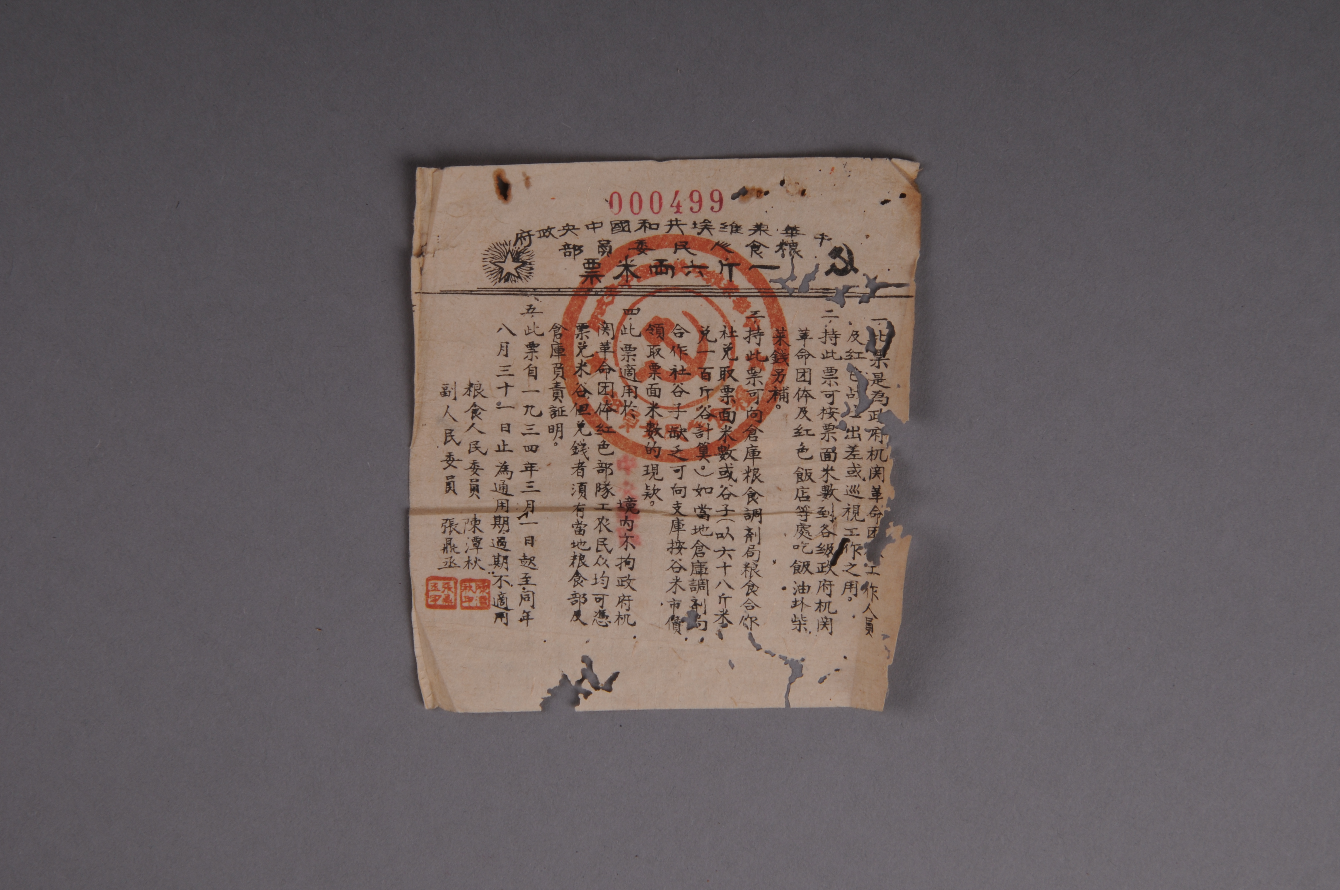 200906★1934年中华苏维埃共和国中央政府粮食人民委员部一斤六两米票