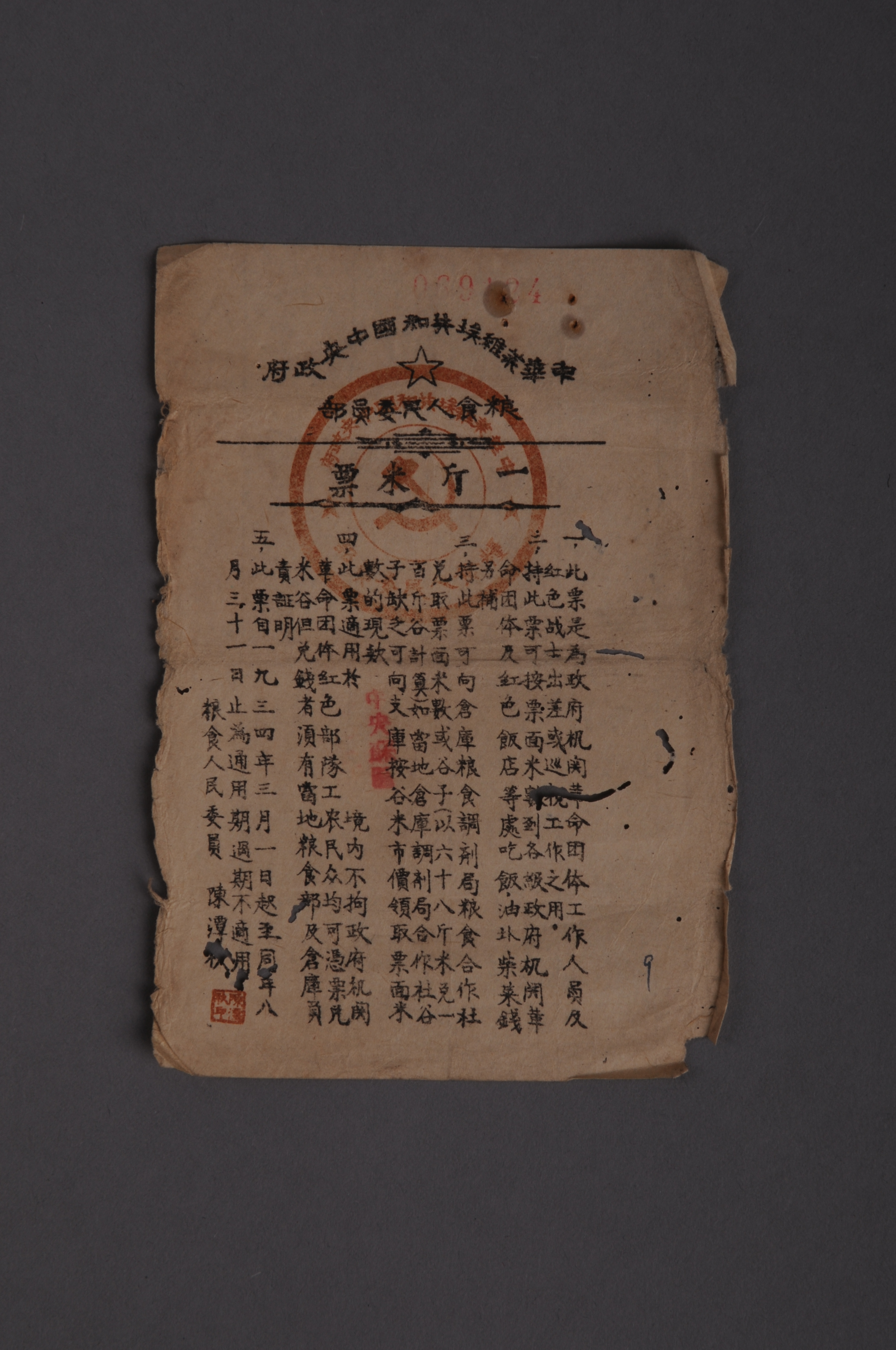 200917★1934年中华苏维埃共和国中央政府粮食人民委员部一斤米票