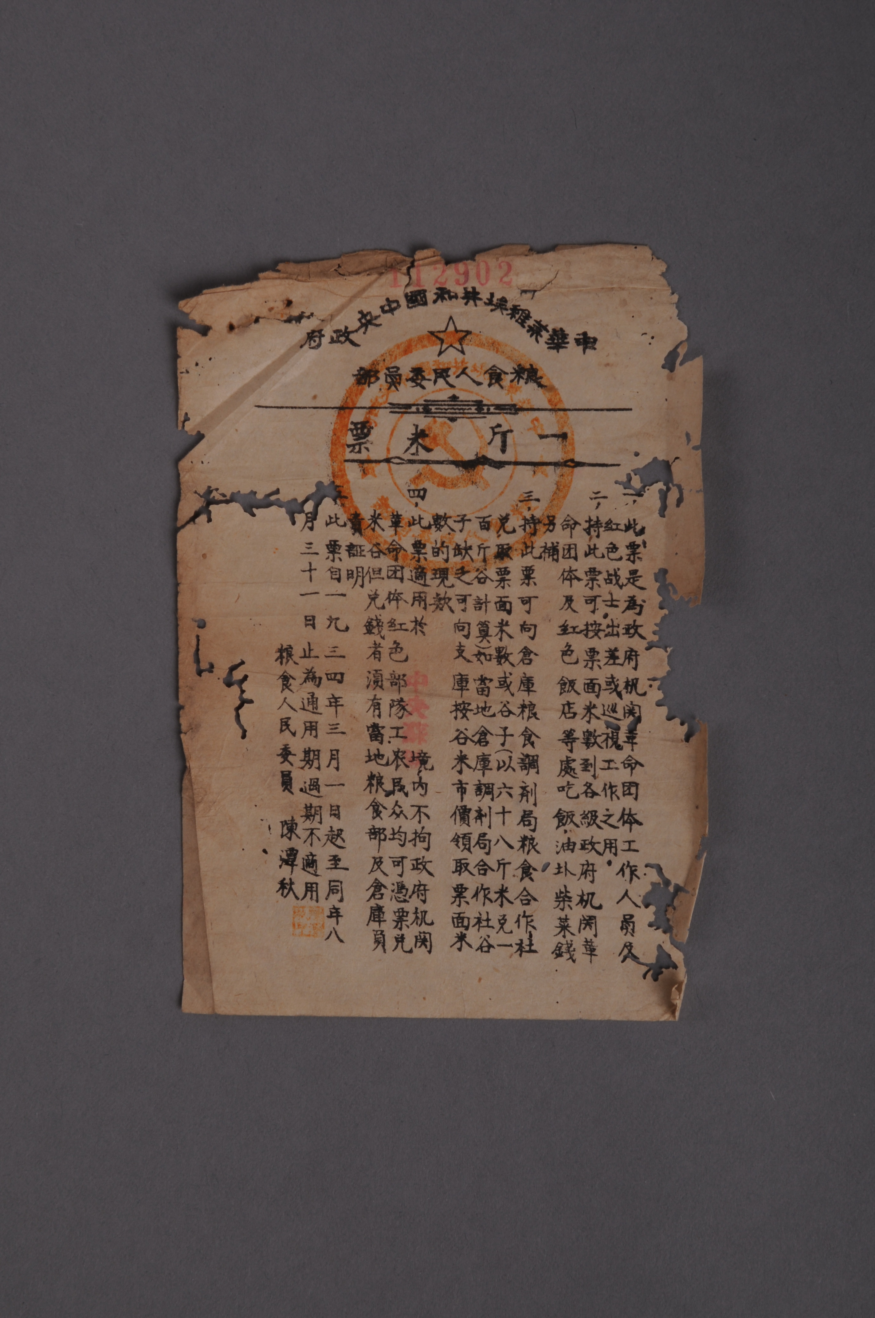 200919★1934年中华苏维埃共和国中央政府粮食人民委员部一斤米票
