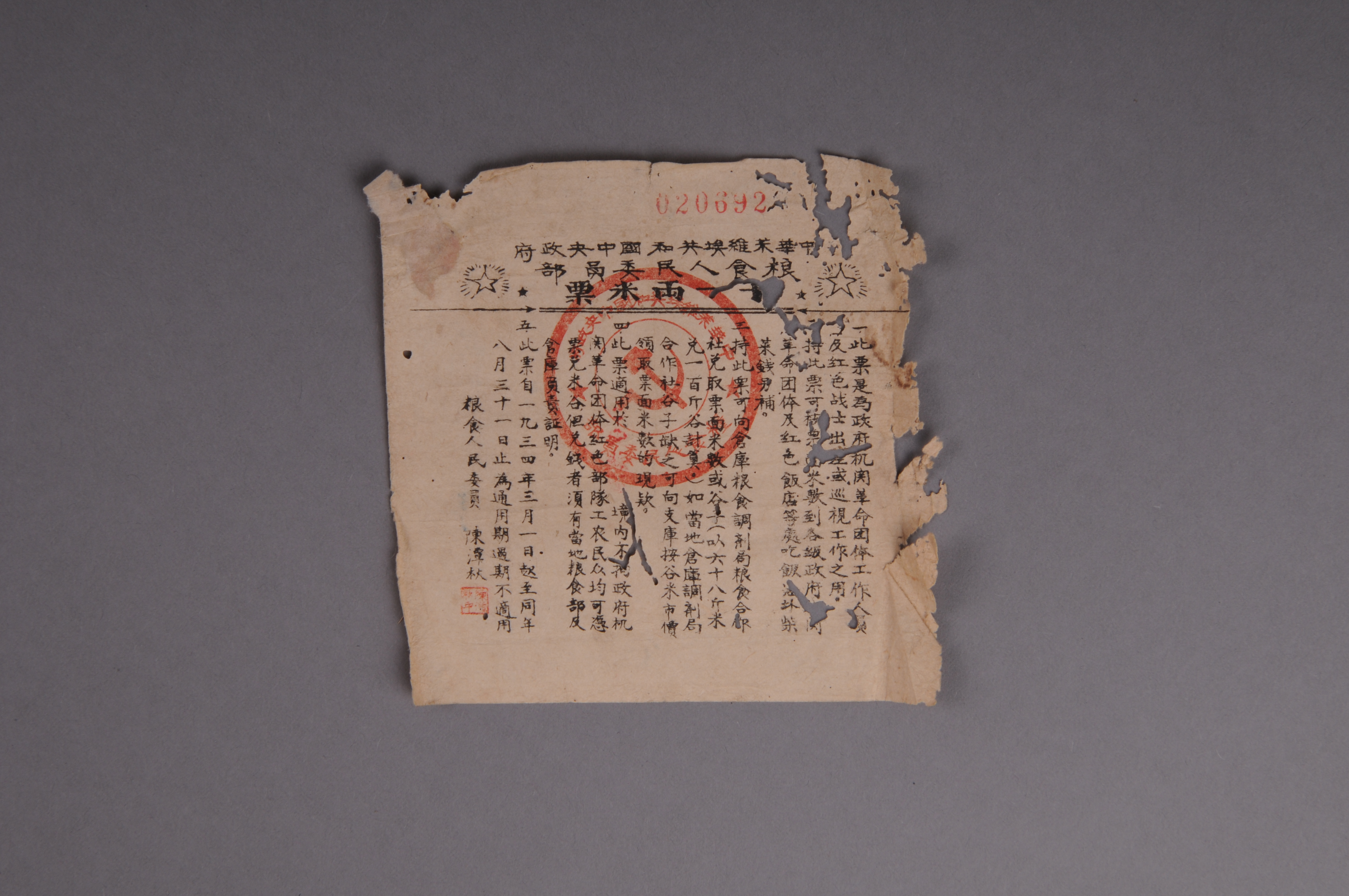200924★1934年中华苏维埃共和国中央政府粮食人民委员部十一两米票