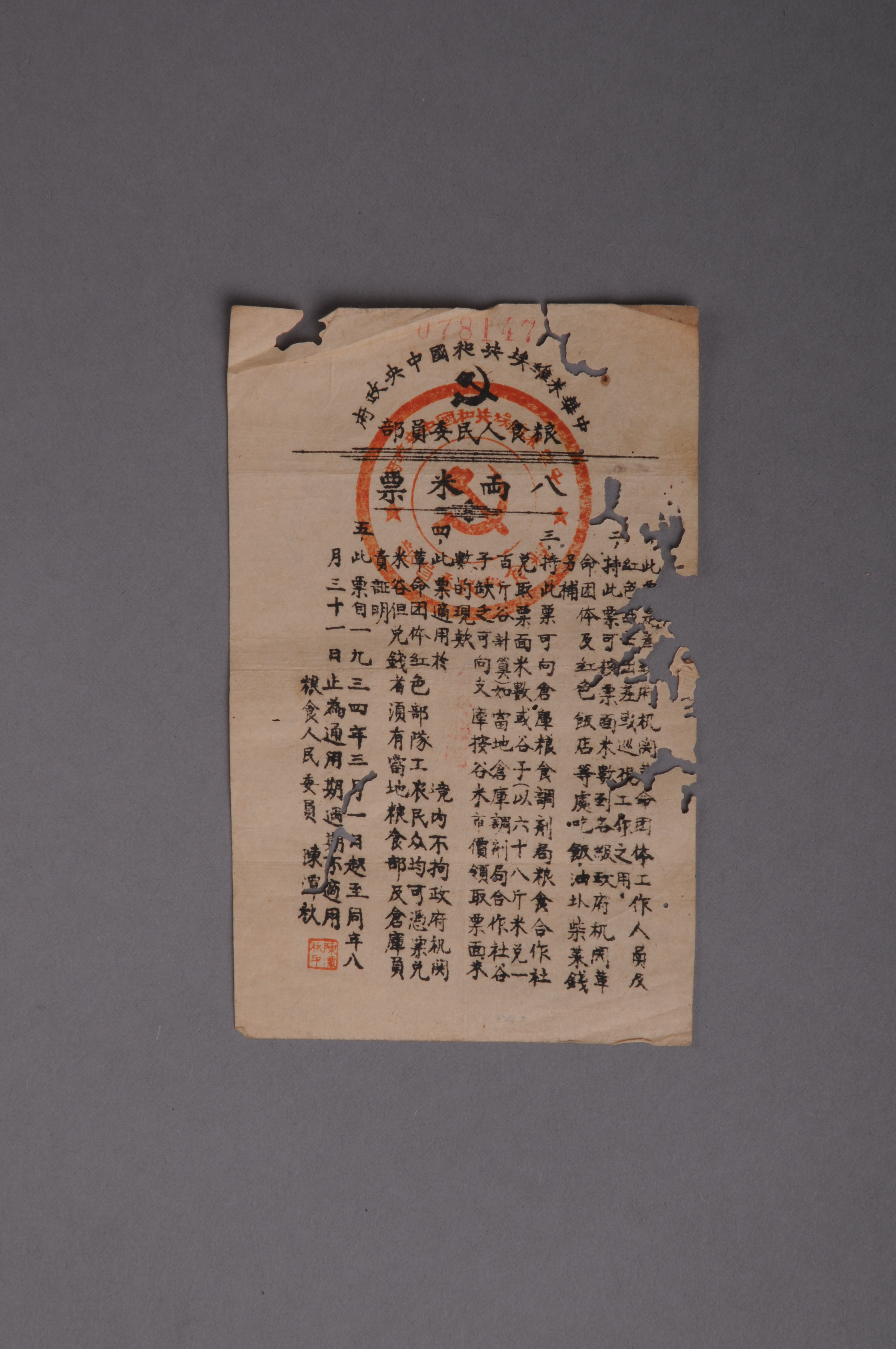 200938★1934年中华苏维埃共和国中央政府粮食人民委员部八两米票