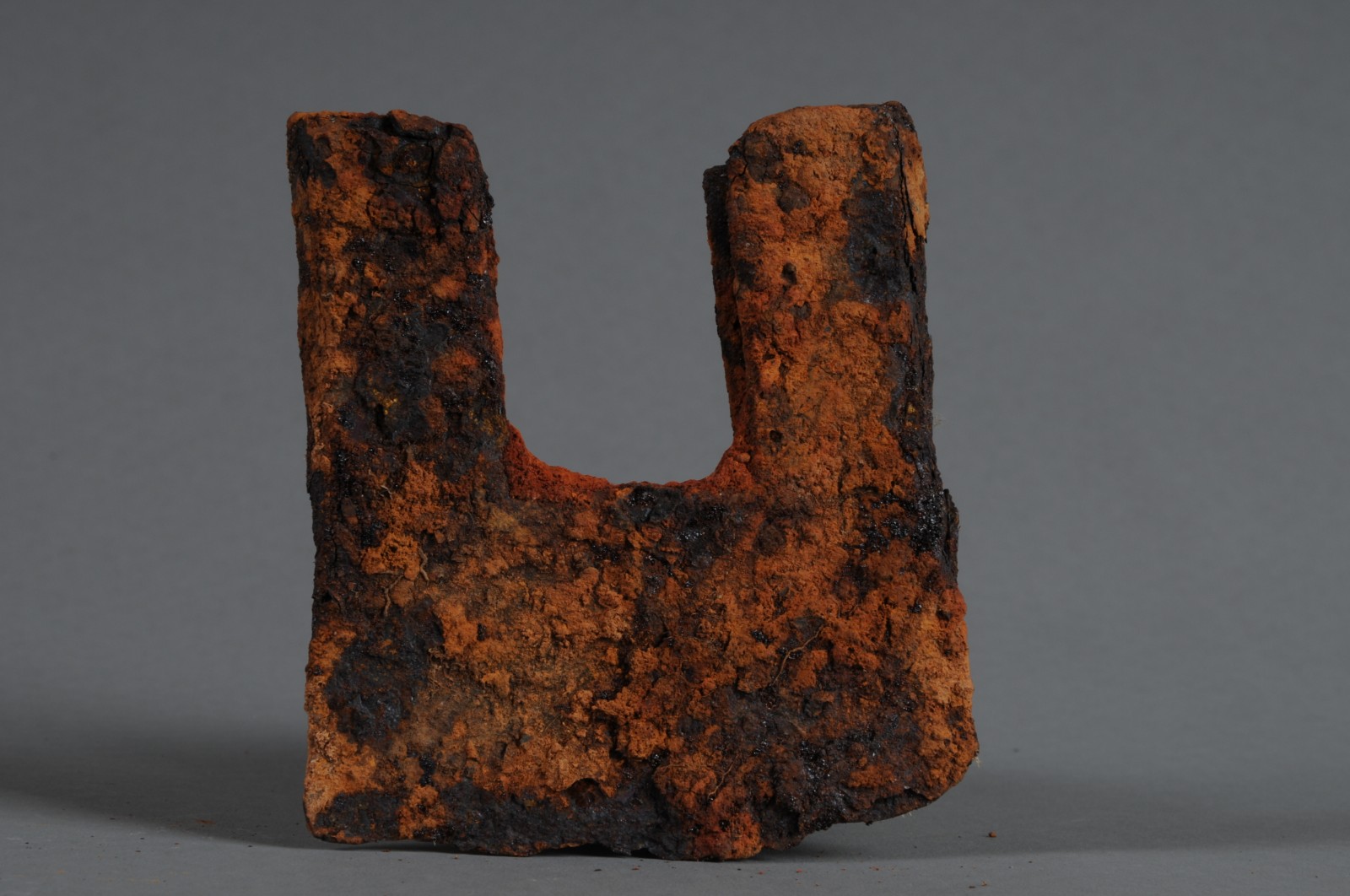 1985年1月7日,新陂乡马岭崠园艺场工人丁克昌,在该场书记丁振英的陪同下送至我馆,据丁说,这是他在园艺场挖蓄水沟时出土的,同时出土的还有碗六个、铁铲一把、铁刀一把。