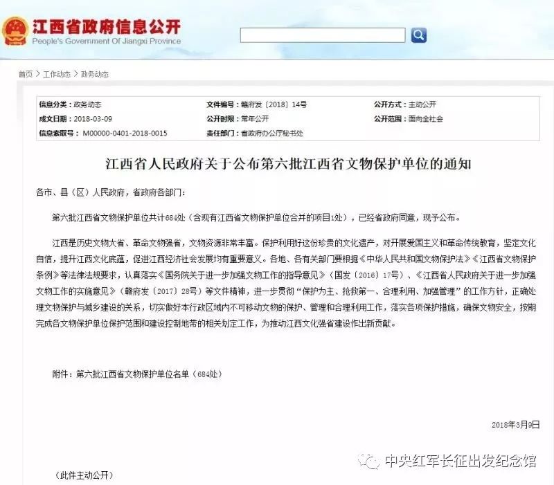 近日,江西省人民政府公布了第六批江西省文物保护单位,我县新增11处!截至目前,于都县共13处不可移动文物点列为江西省文物保护单位。