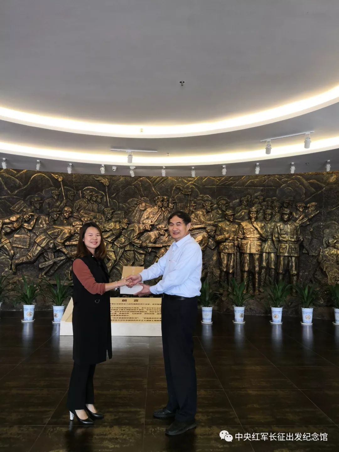 2018年4月18日上午,朱德同志外孙、八路军研究会副会长刘进,军事科学院研究员李远玲,西北大学现代学院儒学研究院副院长、教授、八路军研究会成员郑闽江等一行5人在于都县博物馆蓝华英馆长的陪同下参观中央红军长征出发纪念馆、赣南省苏维埃政府旧址、中革军委旧址、红四军军部旧址,并捐赠书籍《我的父亲朱德》一套。