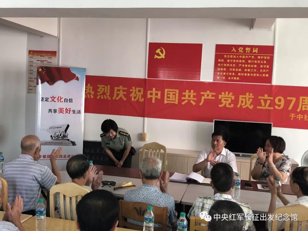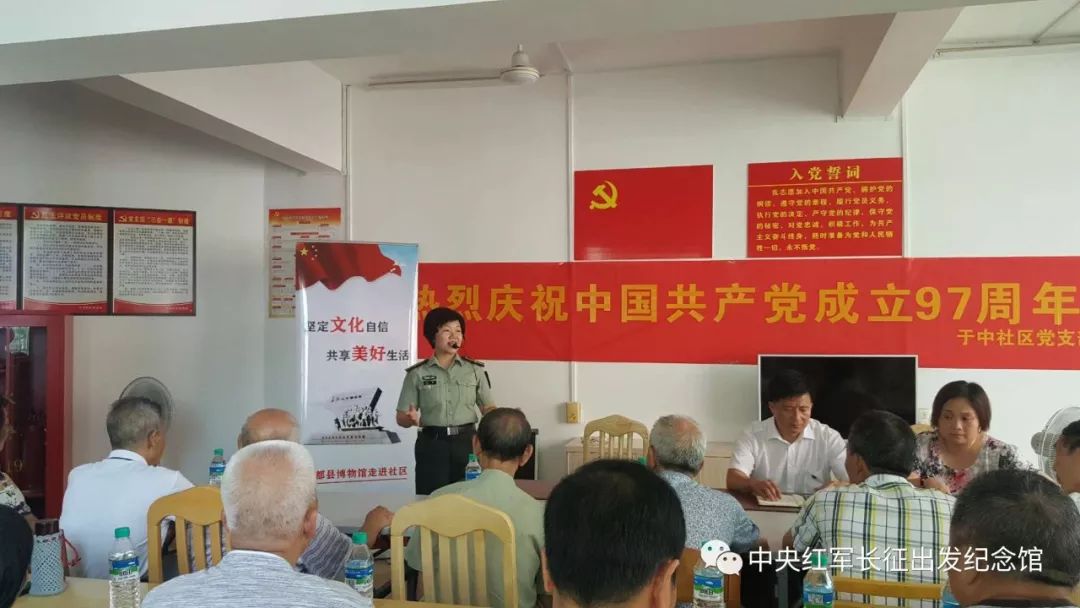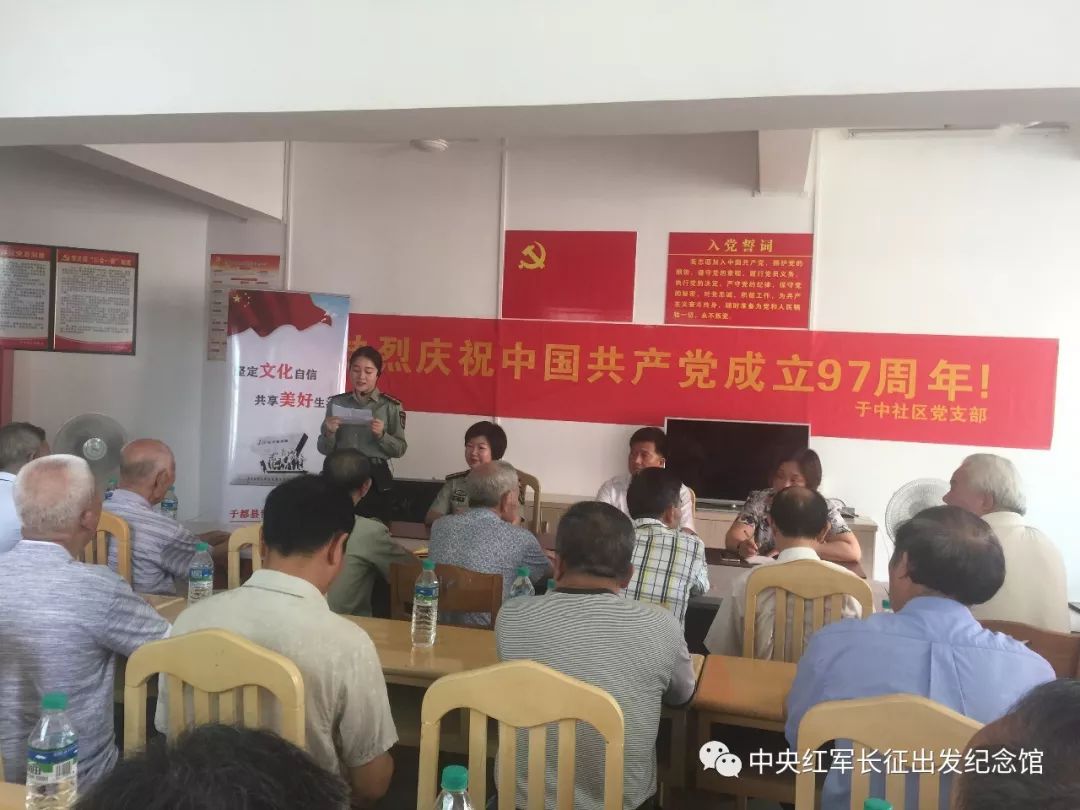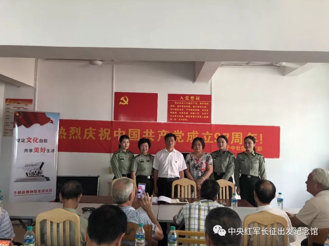 博物馆党支部组织中央红军长征出发纪念馆讲解员走进于中社区。与70多名社区党员分享红色经典,重温党的历史,共同庆祝中国共产党成立97周年。