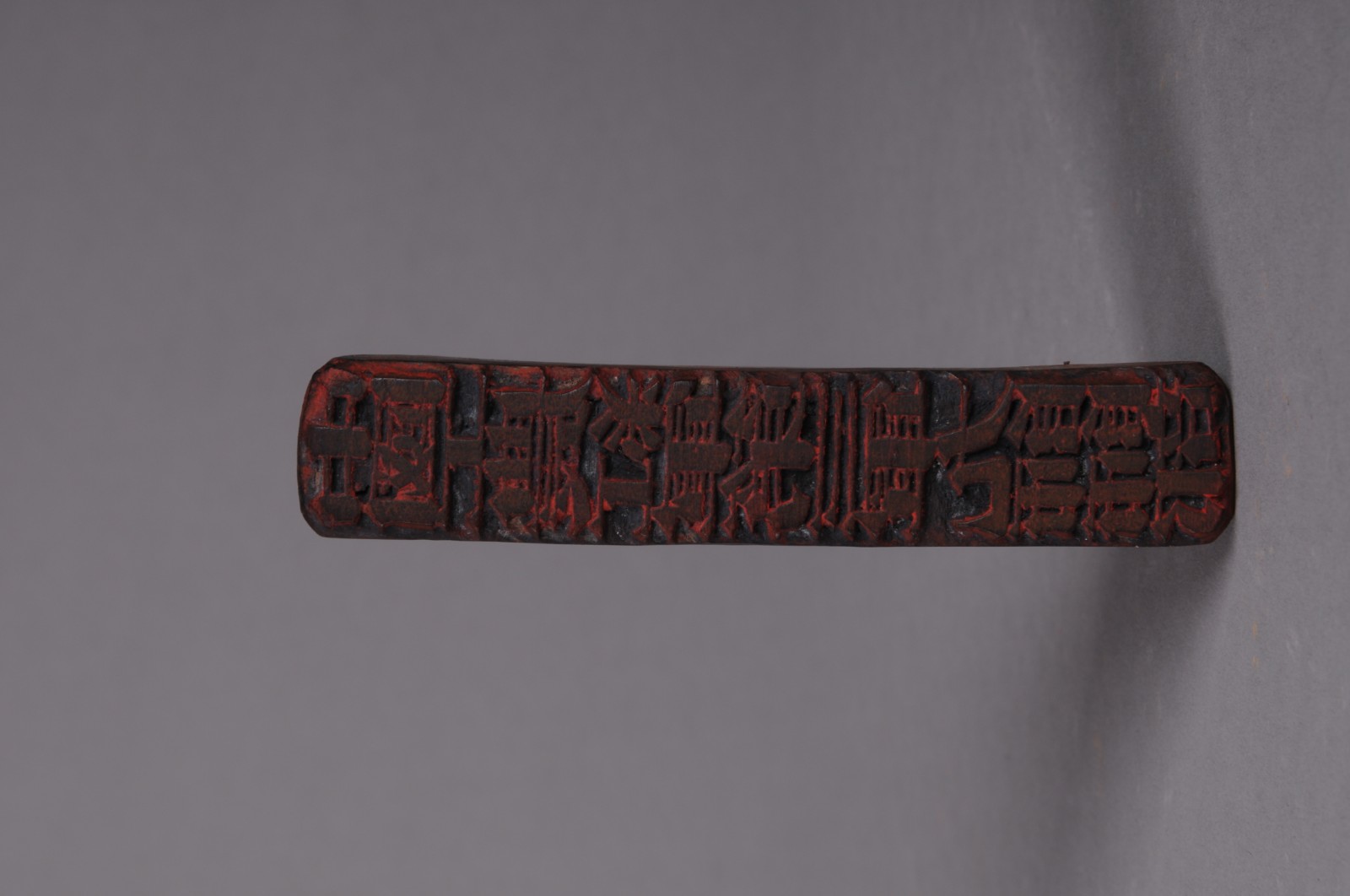 木质,长条形,正面竖刻仿宋字体:“中国工农红军第三军九师师部”,背面刻一“上”字。