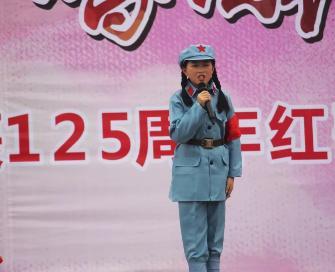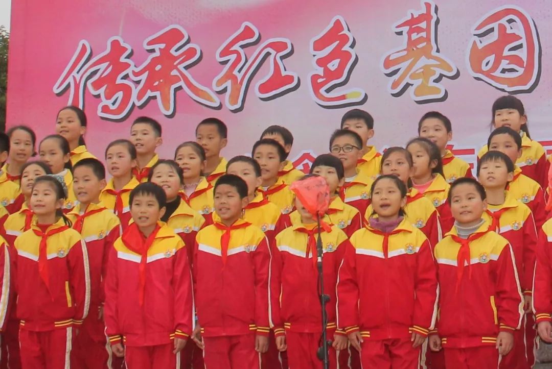 ▲于都县长征源小学的学生演唱《毛委员和我们在一起》、《我爱北京天安门》。