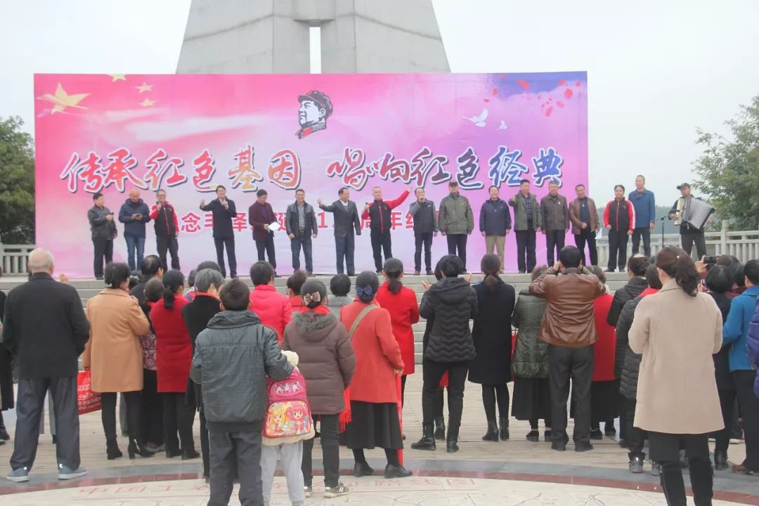 ▲“幸福不忘哪里来,红色源头记心窝”,于都县长征源合唱团饱含情感演唱《红军渡 长征源》,让人铭记历史、不忘党恩。