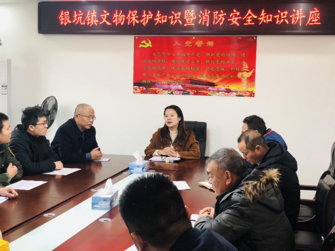 12月24日,于都县博物馆在银坑镇召开文物保护知识暨消防安全知识讲座。讲座由银坑镇宣传委员易志勇同志主持,县博物馆馆长蓝华英同志,副馆长张小平同志出席讲座并讲话。此次会议是为了带领乡村一级文物保护管理员学习文物保护知识,强化文物保护意识和消防意识,进一步提高大家的文保水平。