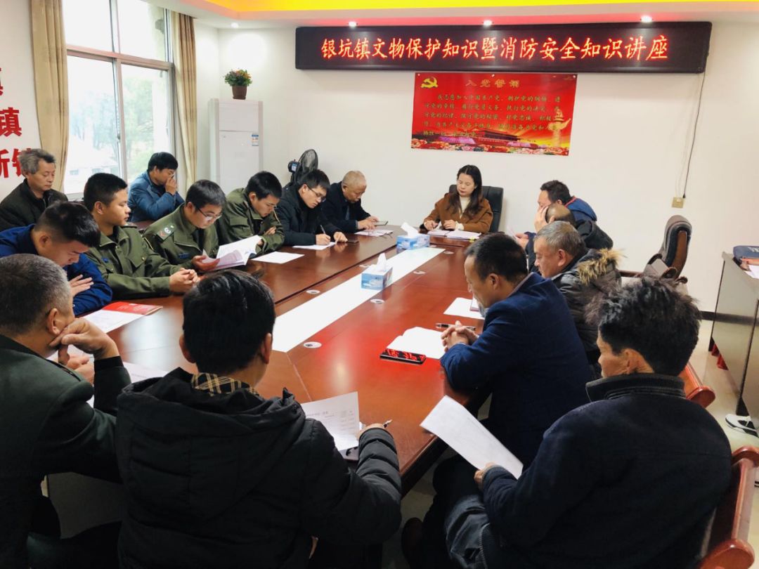本次座谈特邀银坑镇消防大队通过单位消防安全职责、文物建筑消防检查要点及文物建筑消防检查办法等方面,对火灾初期的应急处置方法、火场自救及常见误区、消防器材和消防设施使用等方面的消防安全知识给大家进行了深刻地讲解及现场演练。银坑镇宣传委员易志勇同志针对此次讲座进行了总结:一是要提高思想认识,谨记责任义务;二是要加大文物保护知识宣传力度,提升群众保护意识;三是要加强文物保护点范围内外的建房审批;四是要确保文物保护点的治安和预防措施。
