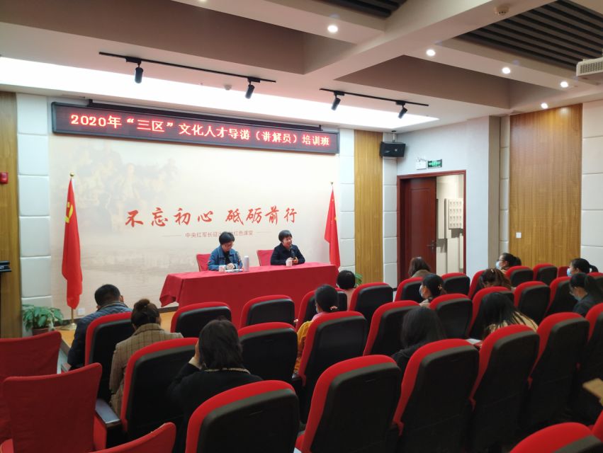 为进一步提高导游讲解员自身良好的文化素质、知识修养、公众形象、语言表达能力和随机应变能力,2020年3月19日,于都县中央红军长征出发纪念馆举办了为期一天的“三区”人才培训。
