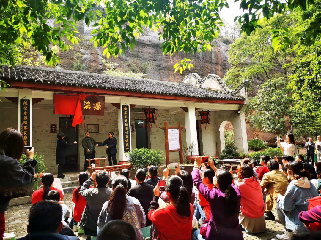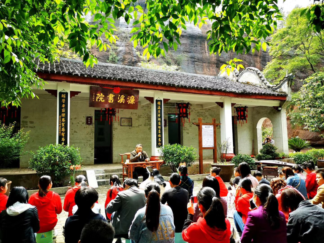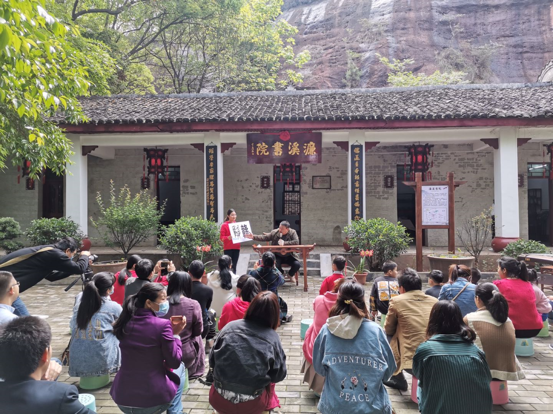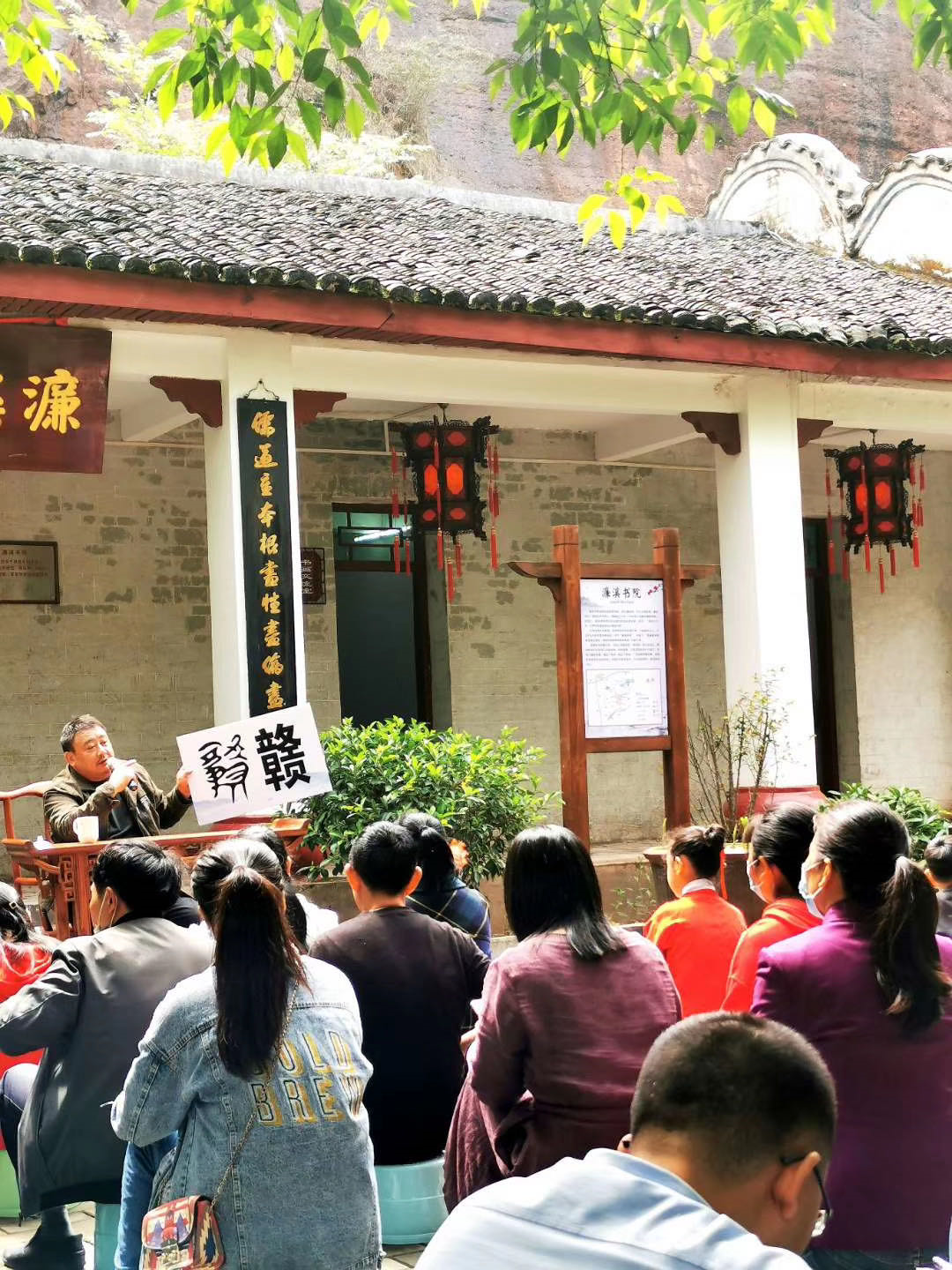 《鸿渐赣南》读书会,最美雩阳四月天。由于都县文广新旅局主办的读书活动在全国重点文物保护单位罗田岩举行。于都籍知名书法家吴本清先生为濂溪书院题额。来自社会各界热爱雩阳文化的读书爱好者参加了今天上午的读书会。读书活动在于都县博物馆、中央红军长征出发纪念馆讲解员的朗朗书声中拉开序幕,文广新旅局和于都县新华书店为罗田岩管理处捐赠了书籍。赣州作协张少华副主席作《破暗——历史中的楚楚雩阳》主题讲座,分享他最新解密的先秦时期的雩赣(gòng)文化和解读继孔孟正统儒学之后的一千五百年元公破暗开启宋明理学新时代的历史意义。让雩都人重新认知自己的文化流源,伸手就触摸到儒家贵族文化的血统,崔嵬如罗田岩,巍巍伟伟的古雩都,从没有缺席中华文化的巅峰,为推动优秀传统文化和红色文化的传播与发展提供了更基本、更深沉、更持久的文化力量。雩阳一览,相观而善。
