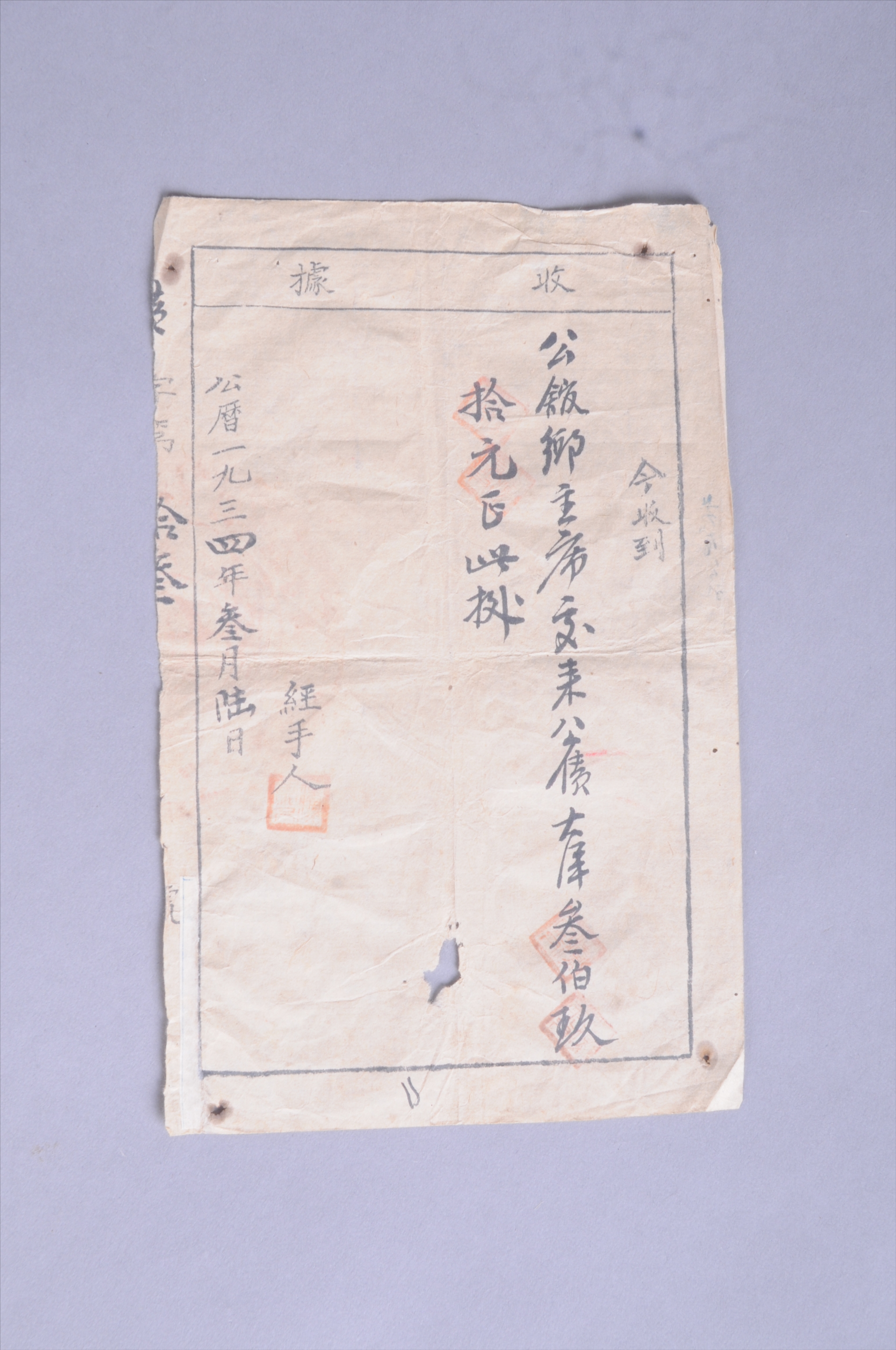 200708★1934年西江县苏维埃政府财政部出具给公馆乡主席的公债收据