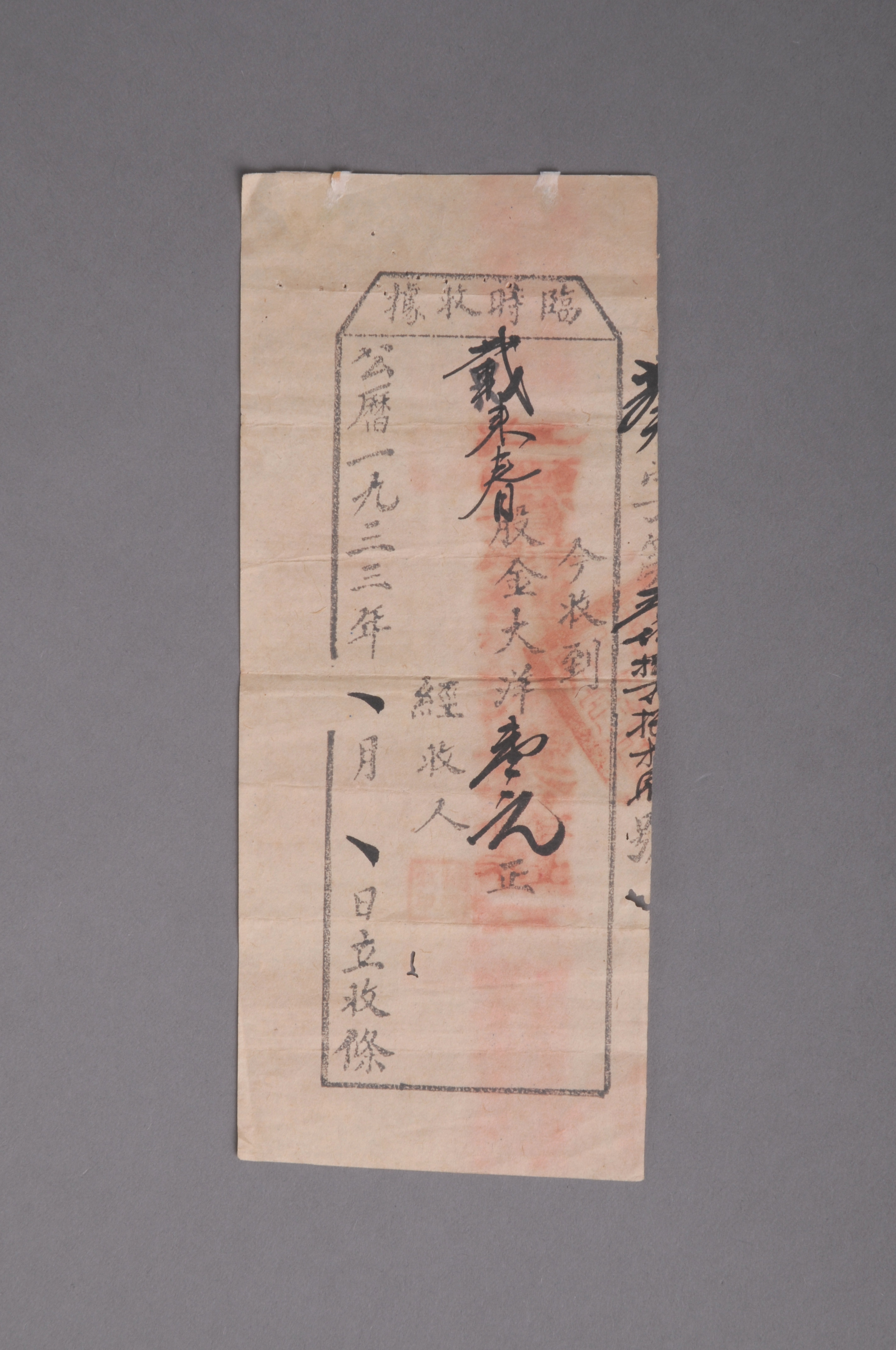 200391★1933年江西省胜利县银坑区总消费合作社发给戴来春的股金临时收据