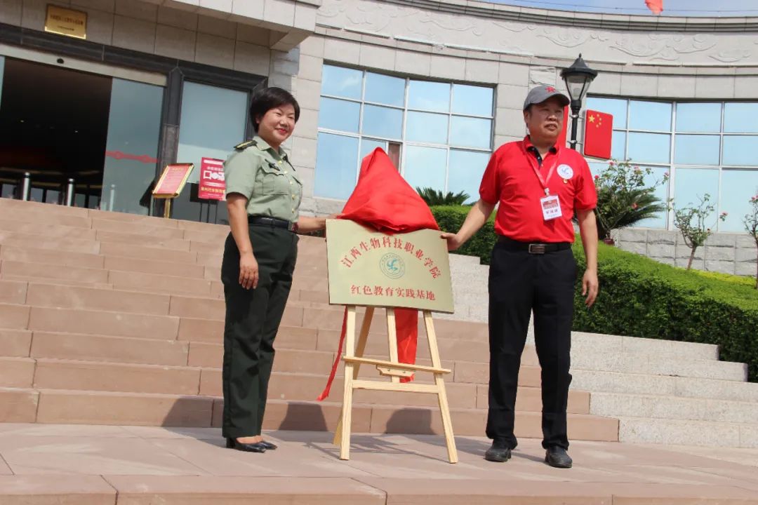 江西生物科技职业学院党委副书记、江西省农业干部学校党委书记、校长、江西省农业广播学校校长谭酬志与中央红军长征出发纪念馆的副馆长钟敏共同为“江西生物科技学院红色教育实践基地”揭牌。