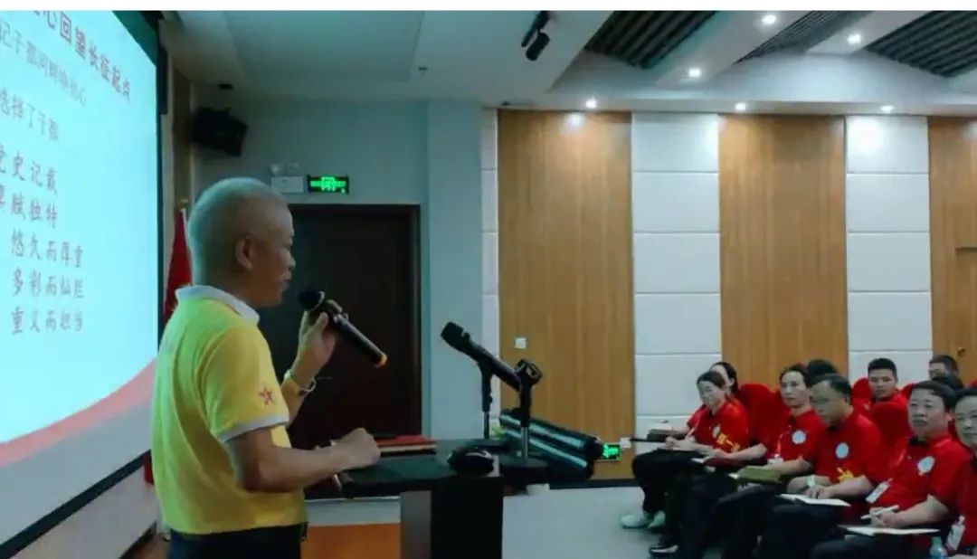 紧接着,于都县政协副主席、长征源合唱团名誉团长袁尚贵为江西生物科技学院一行上了一堂《新长征,让我们从“心”出发》主题党课,从“以敬畏之心回望长征起点”、“以感恩之心读懂伟大长征”、“以虔诚之心弘扬长征精神”等多个方面全方位多角度地介绍了于都历史概况和长征精神新时代含义。