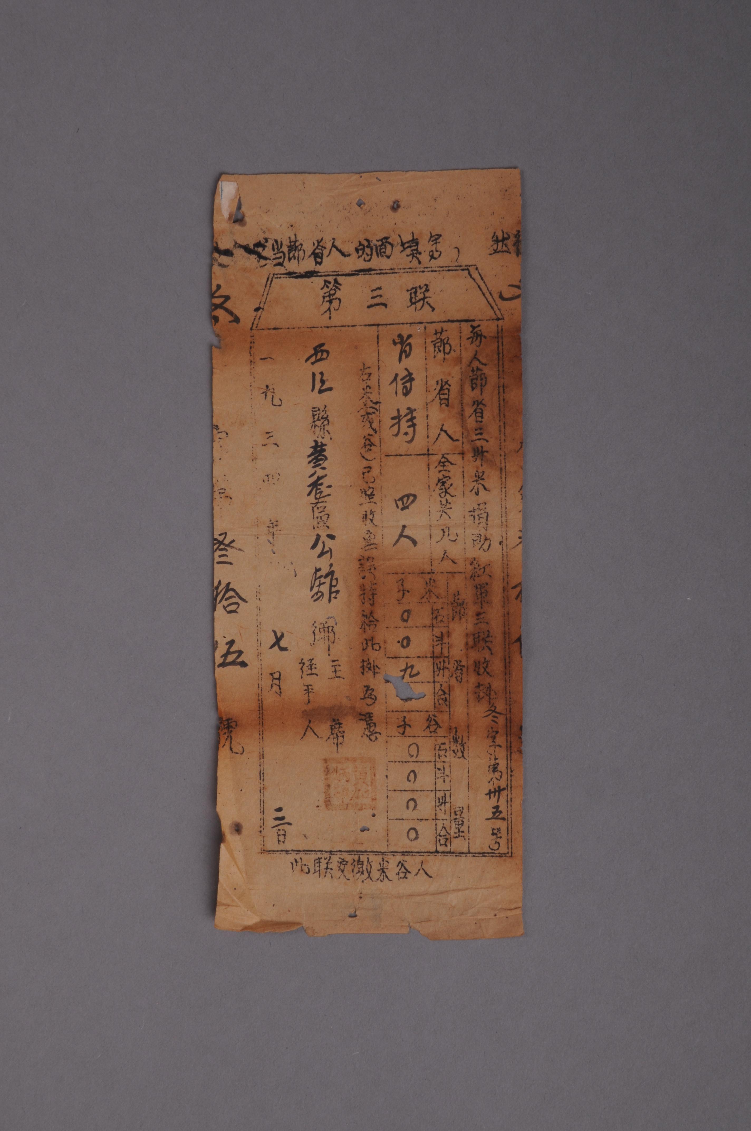 200349★1934年西江县黄龙区公馆乡出具给肖传持的节省粮食收据