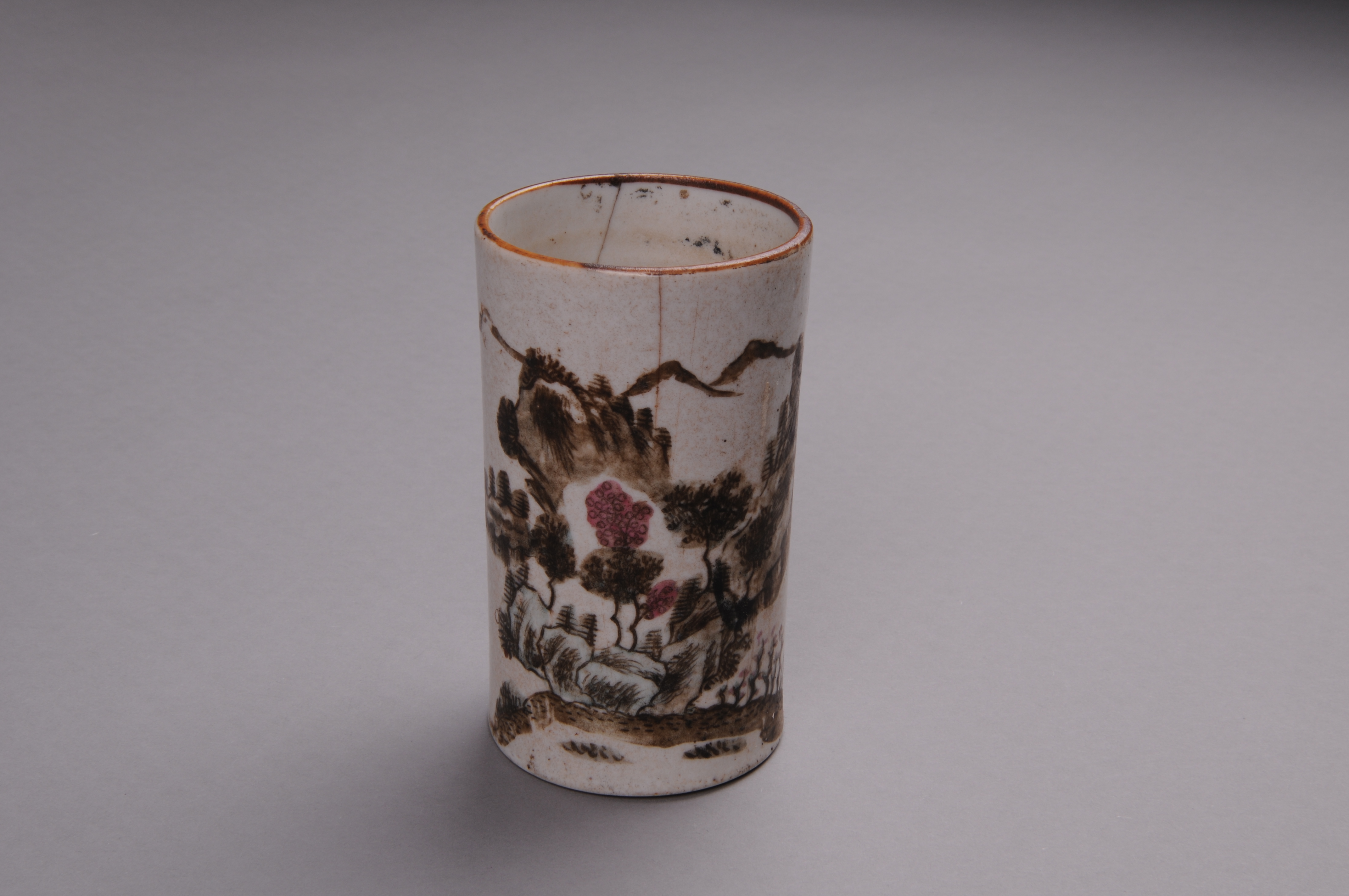 100180清景德镇窑彩绘山水纹笔筒
