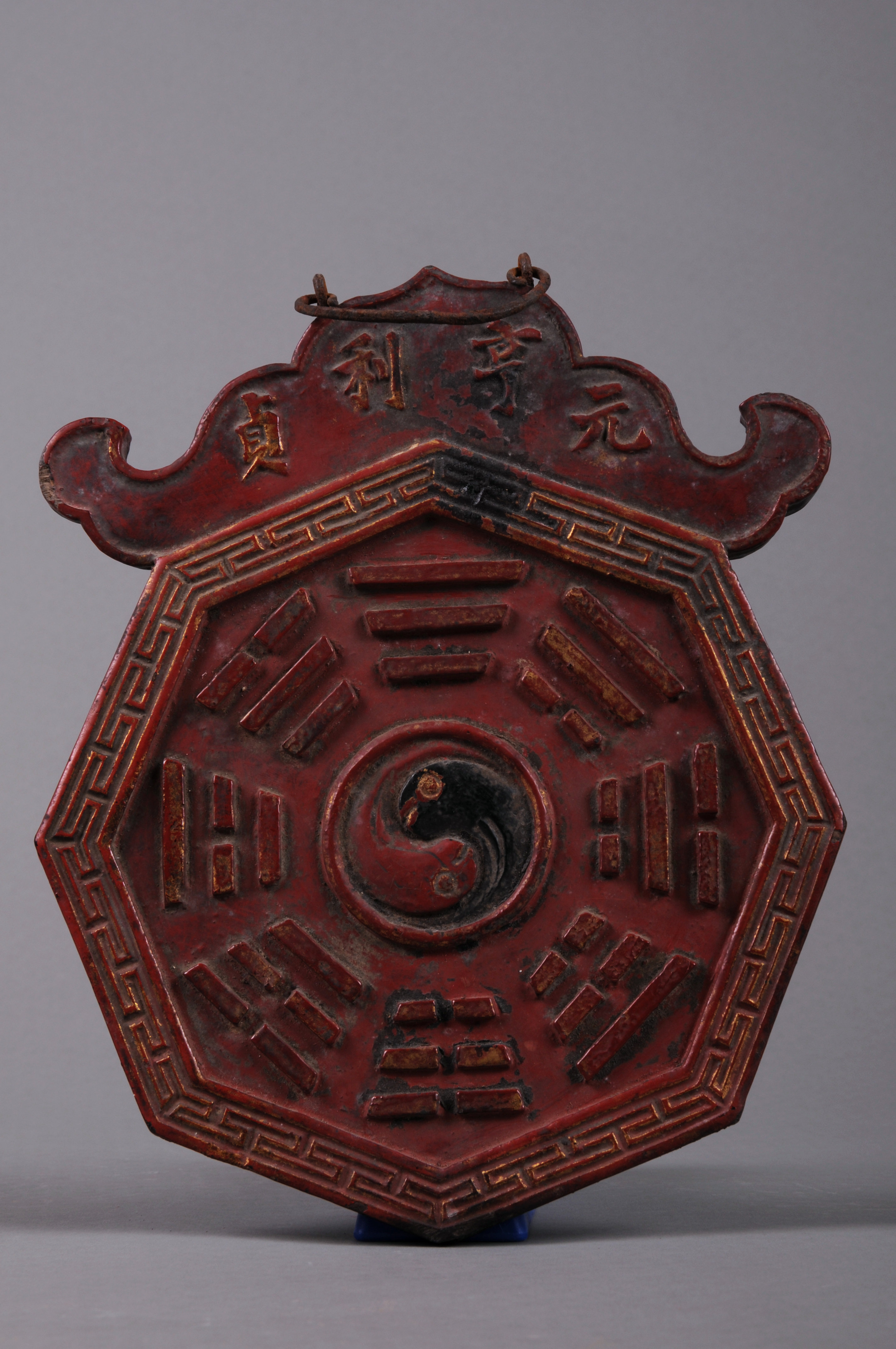 100362清雕刻“元亨利贞”款八卦纹木辟邪