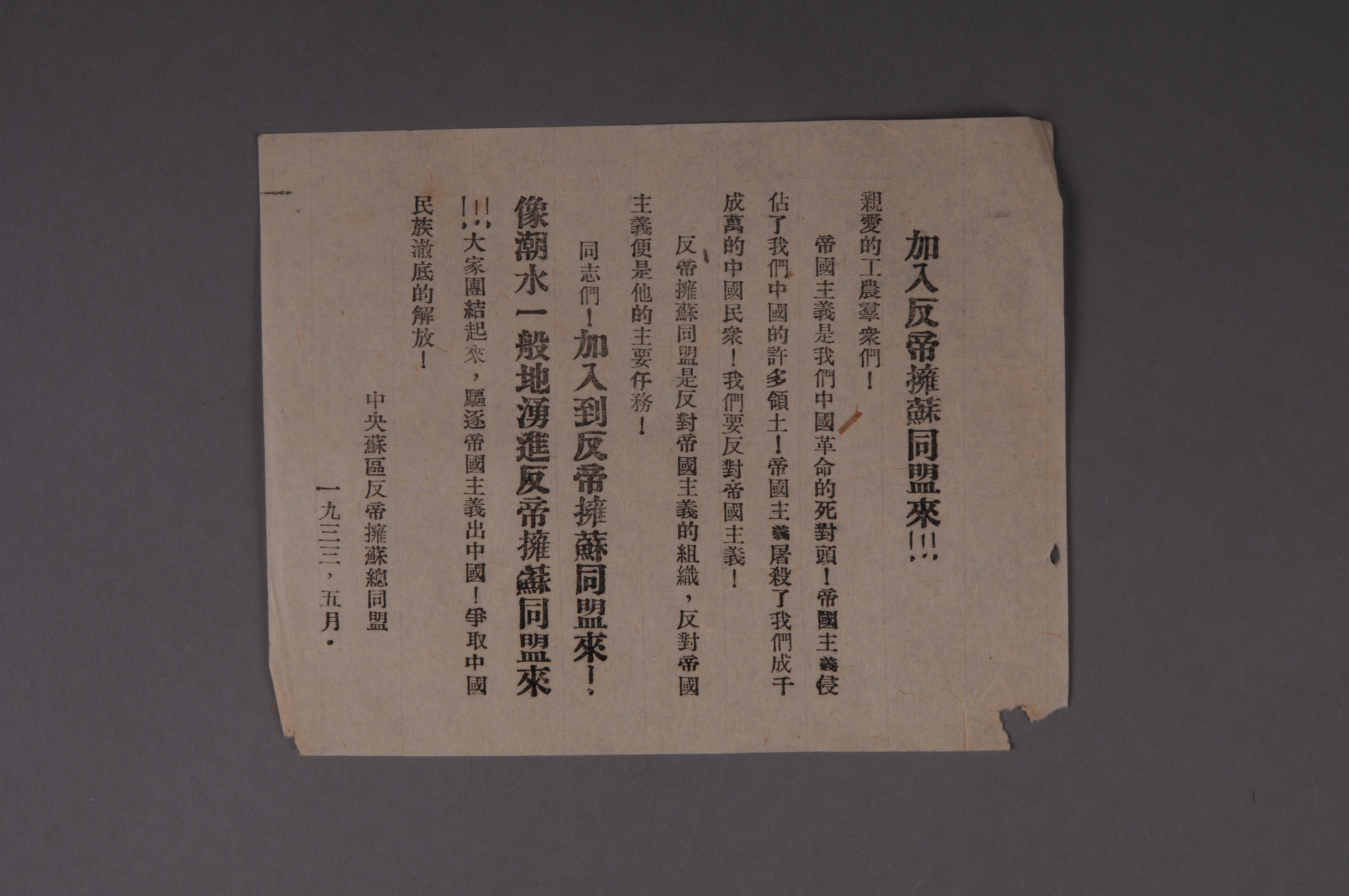 200086★1933年中央苏区反帝拥苏总同盟编印的宣传单《加入反帝拥苏同盟来》