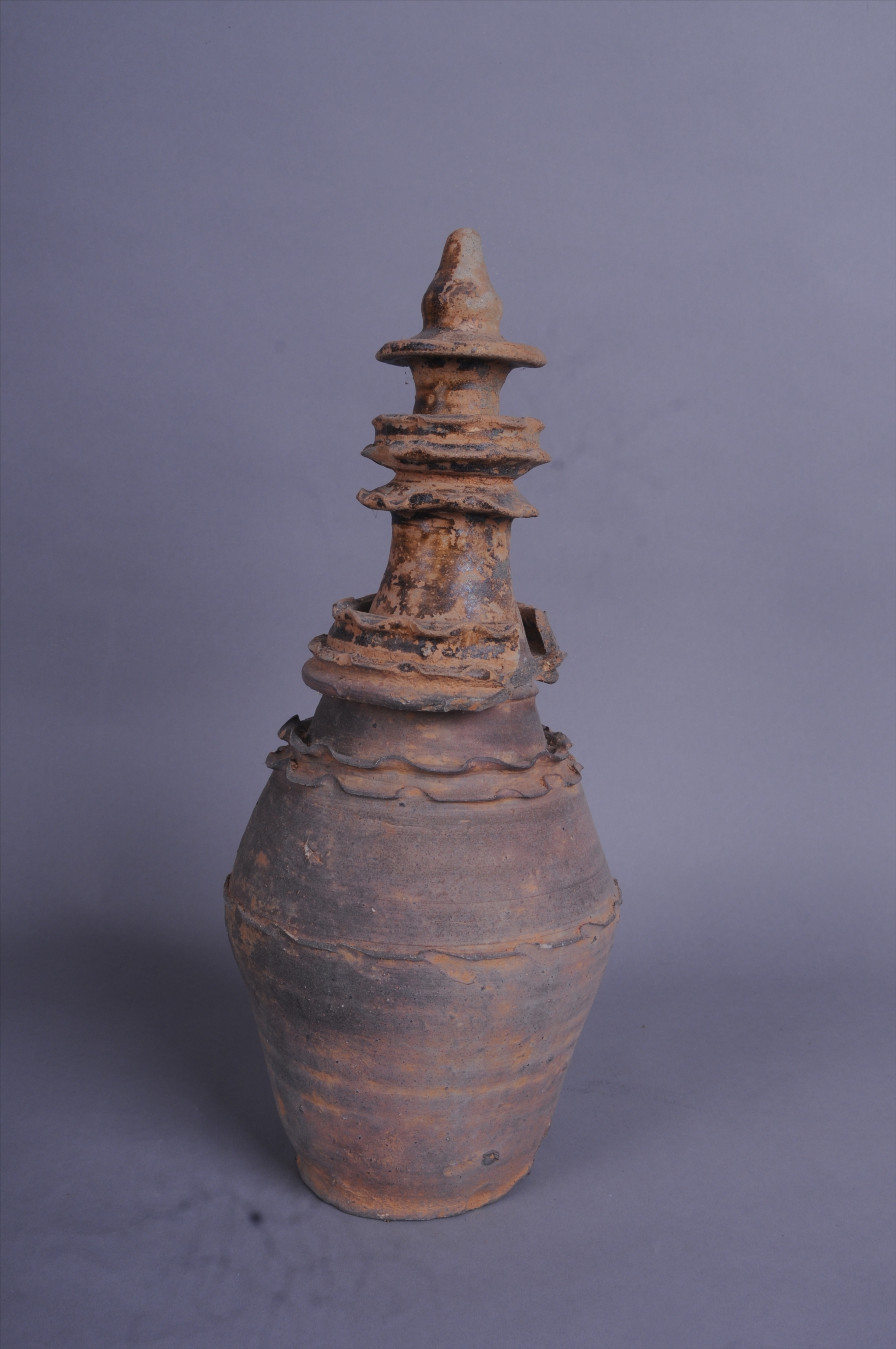 100961唐青瓷堆塑绳纹带盖瓶