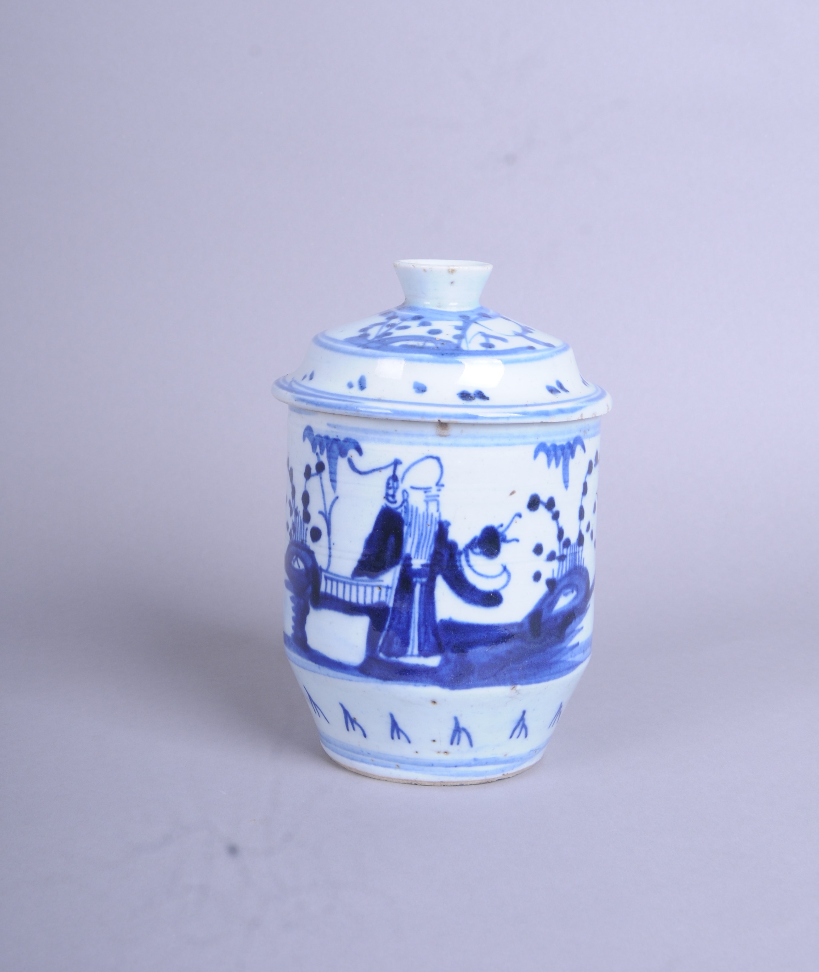 100965清青花人物纹盖罐