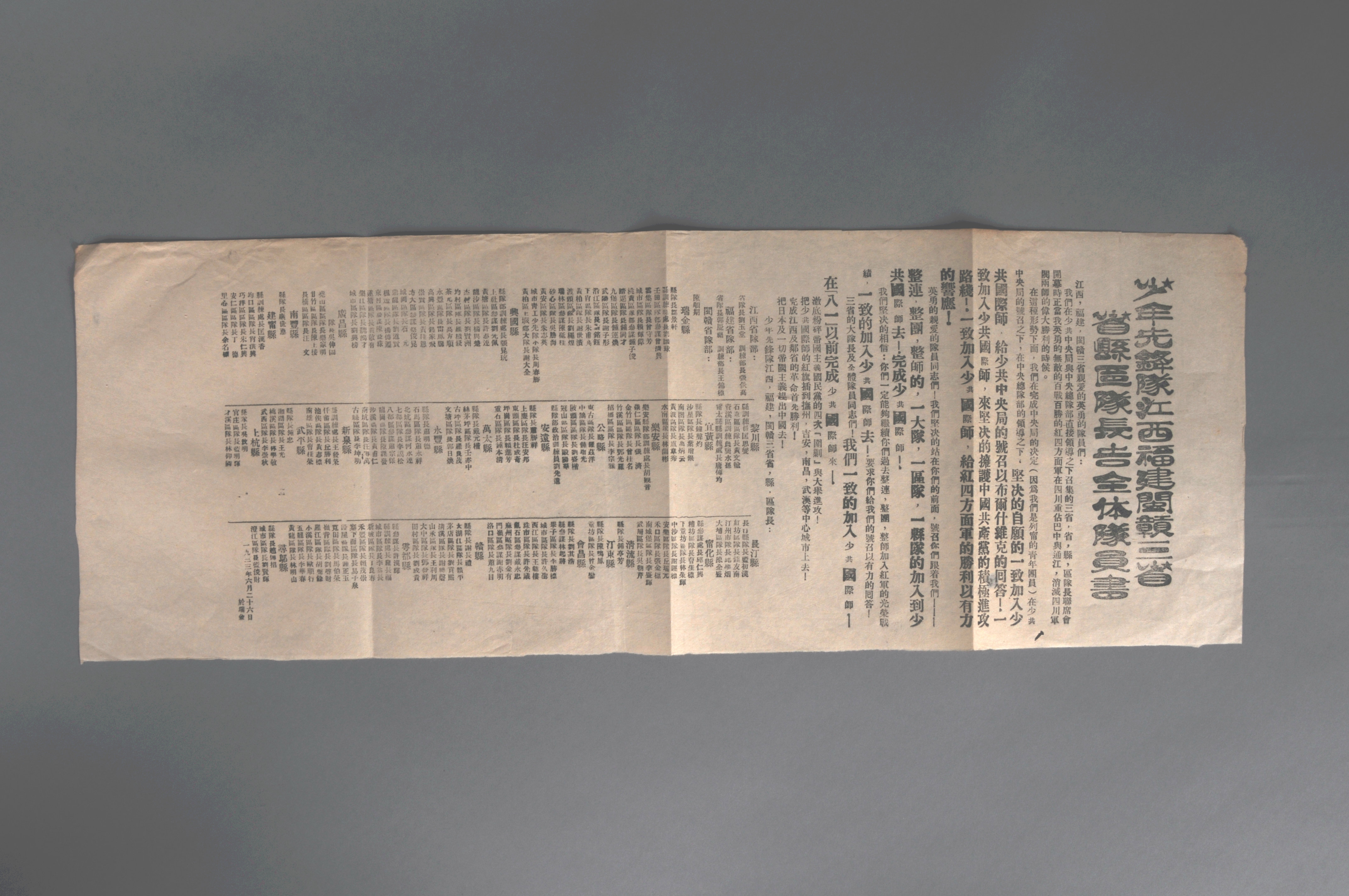 200112★1933年印发的《少年先锋队江西、福建、闽赣三省省县区队长告全体队员书》