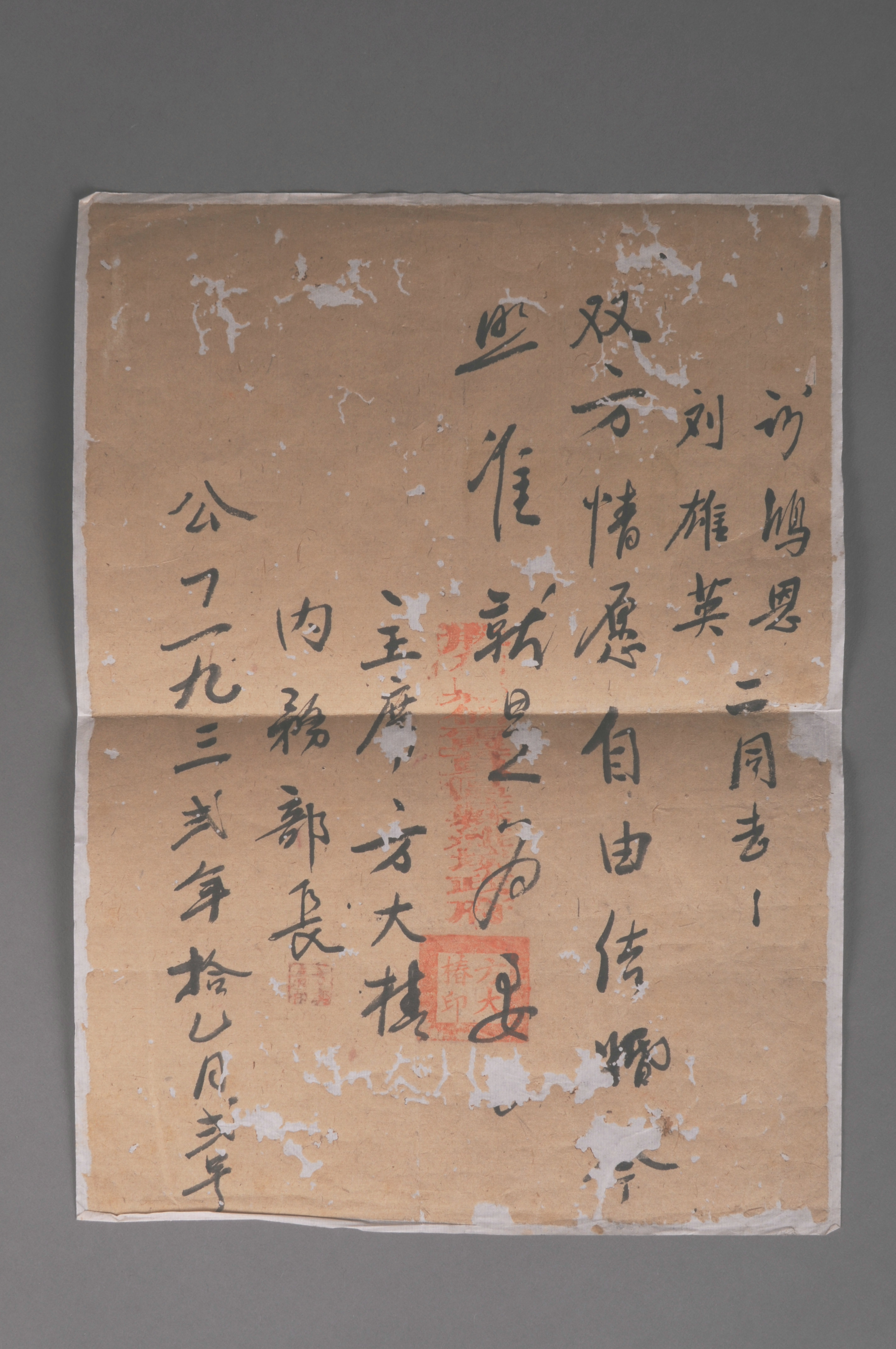 200193★1932年胜利县仙霞贯区苏维埃政府发给谢鸿恩与刘雄英的结婚证明