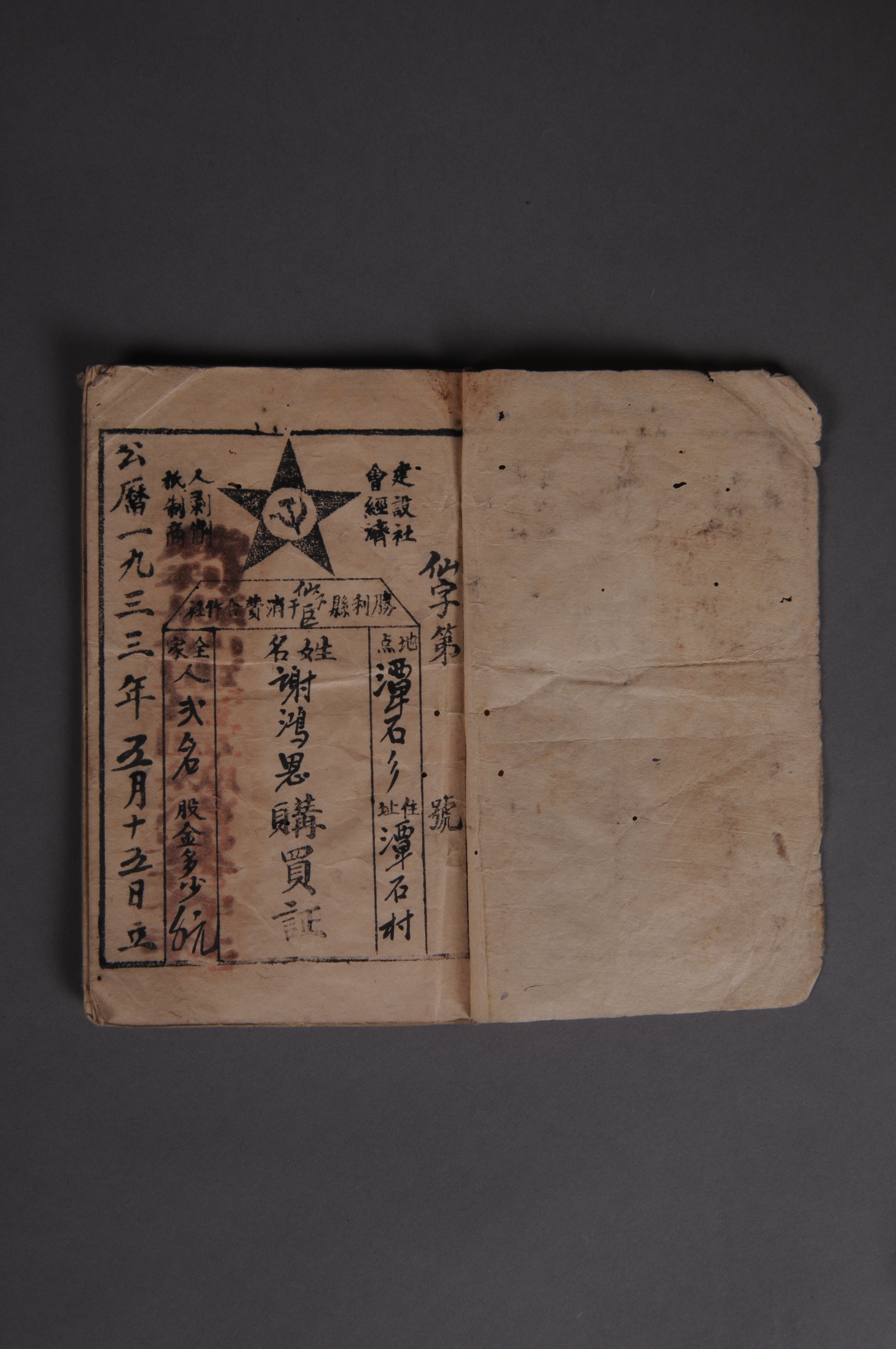200247★1933年胜利县仙下干区消费合作社发给谢鸿恩的购买证