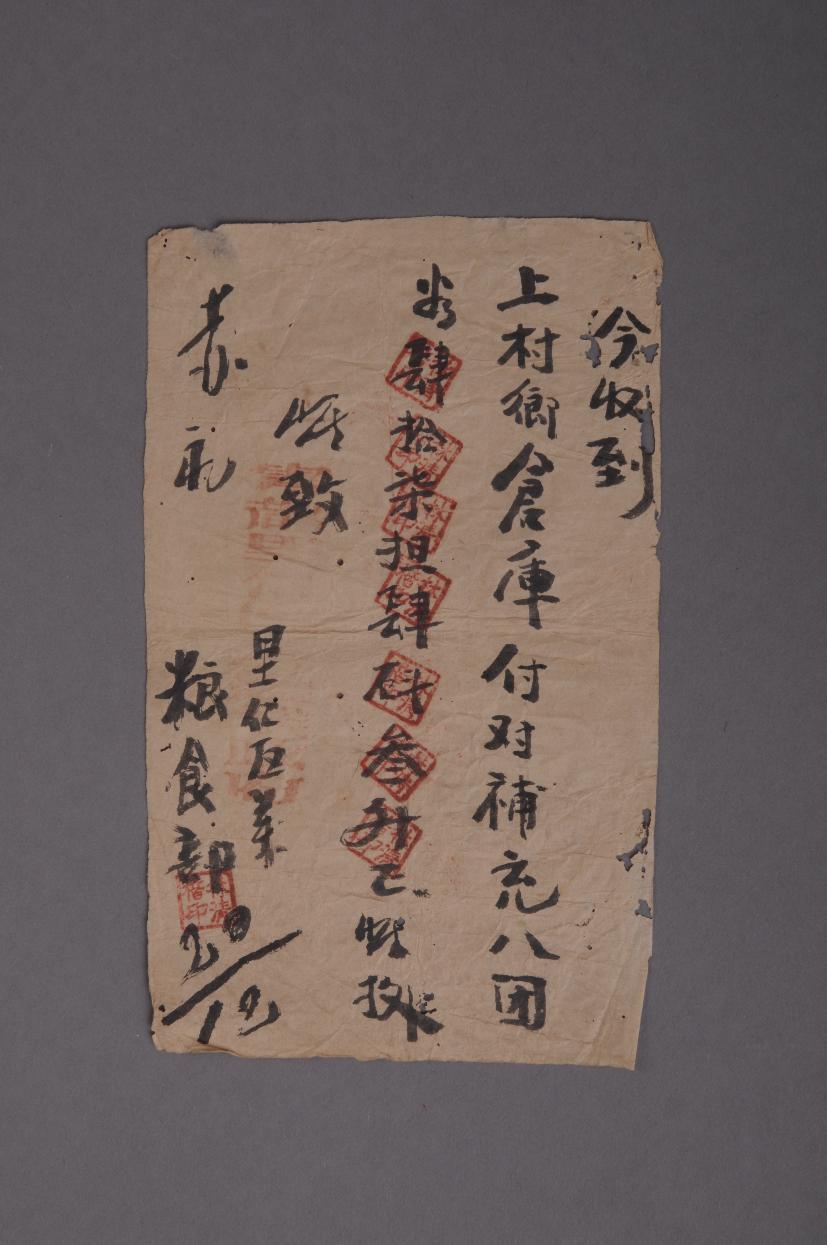 200340★第二次国内革命战争时期里仁区苏维埃政府粮食部给上村乡的收谷收据