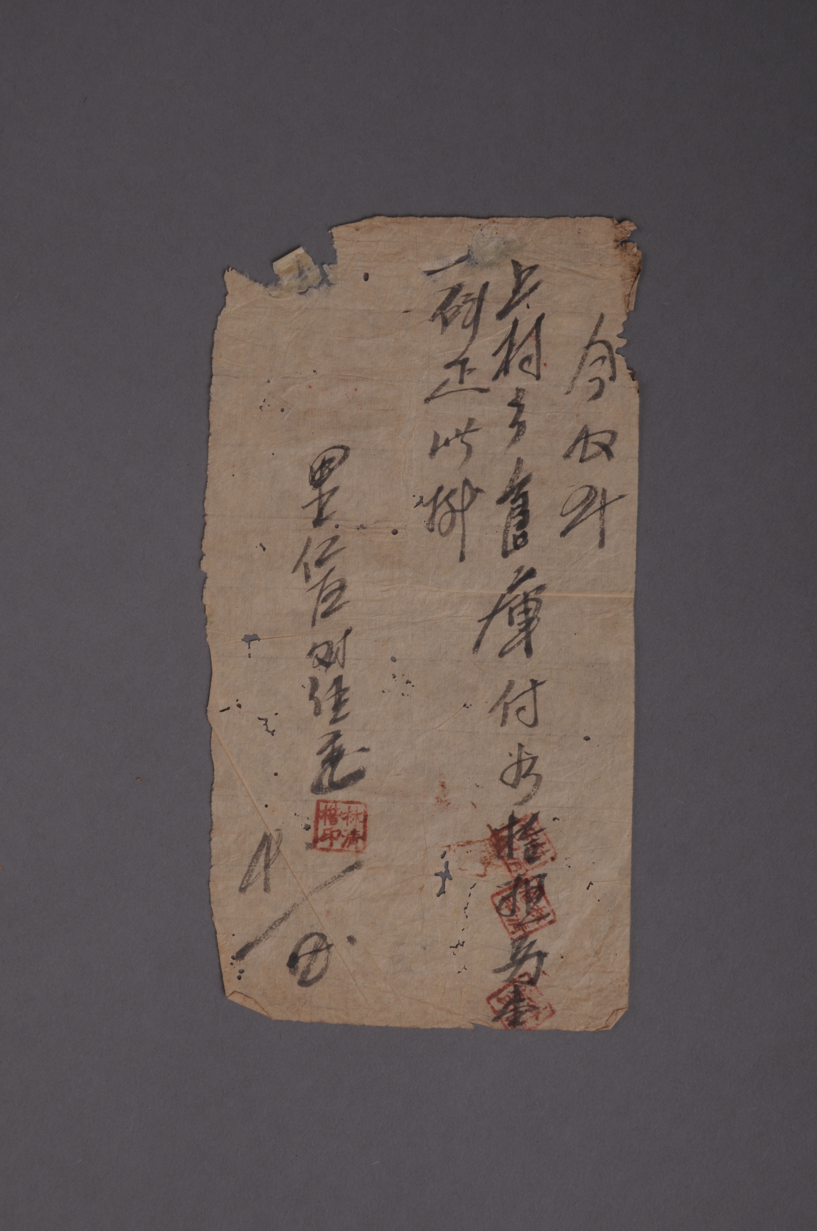 200344★第二次国内革命战争时期里仁区财经委给上村乡的收谷收据