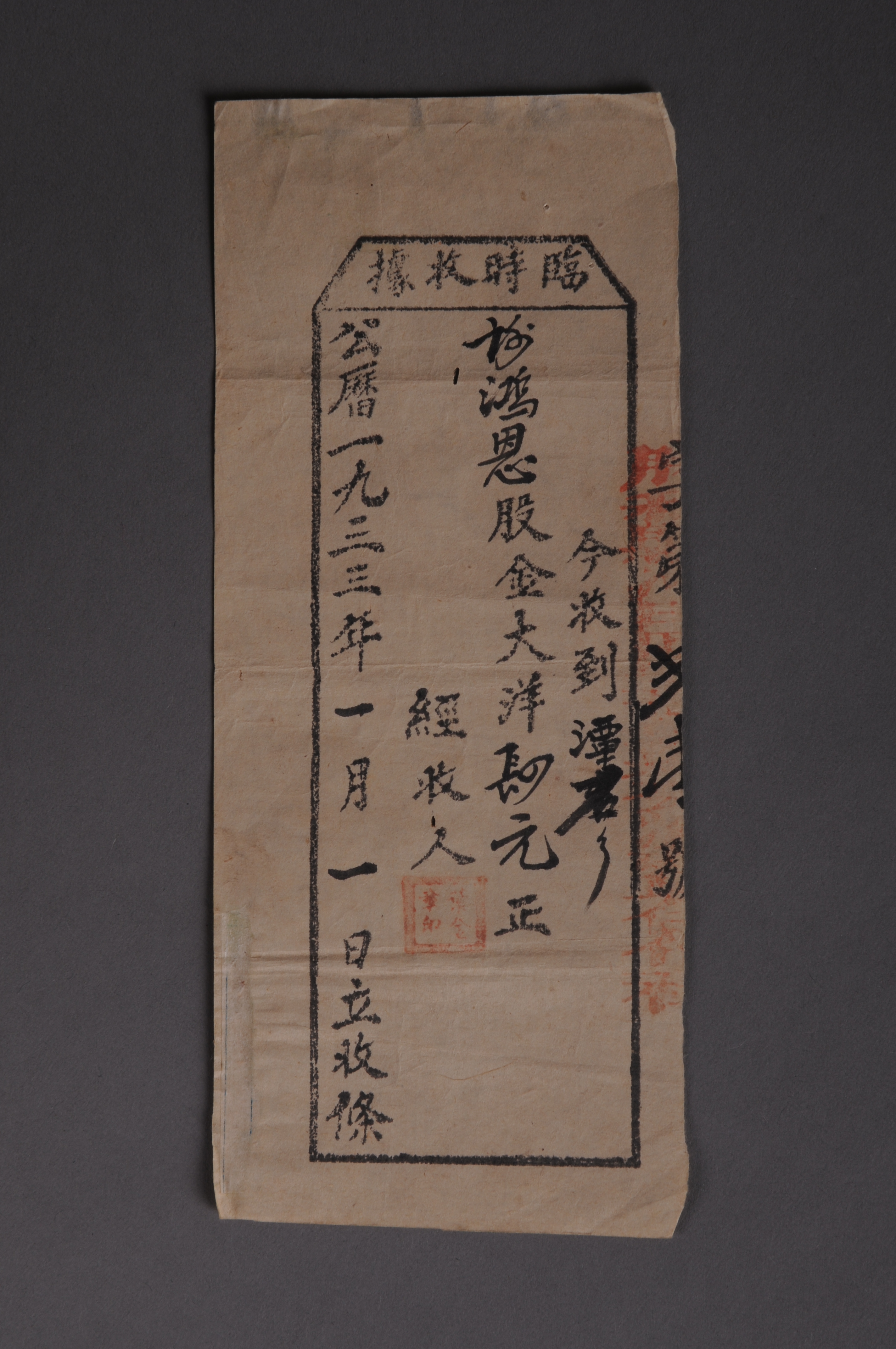 200385★1933年胜利县潭石乡消费合作社发给谢鸿恩的临时收据