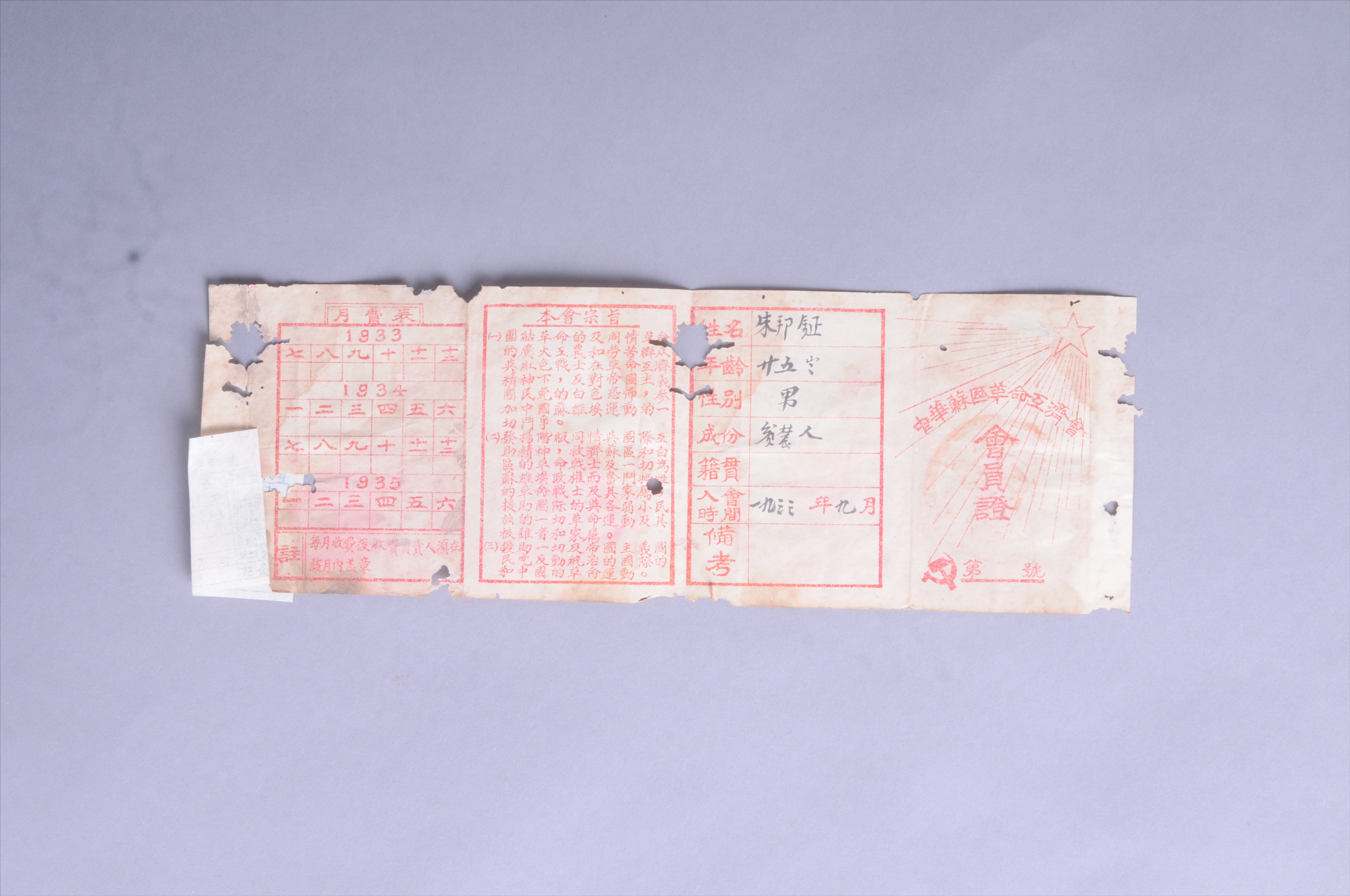 200195★1933年朱邦钲中华苏区革命互济会的会员证