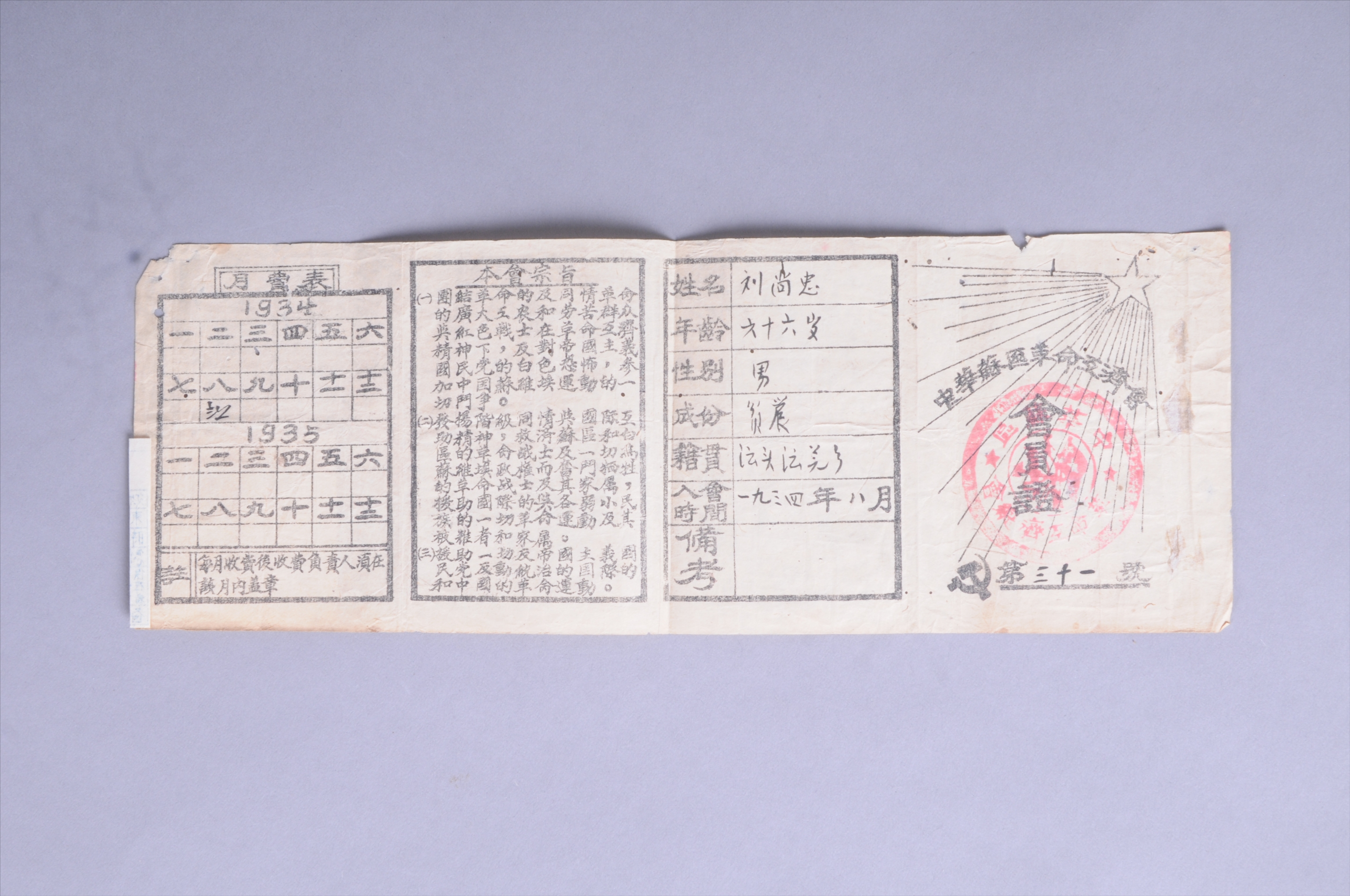 200197★1934年刘尚忠的中华苏区革命互济会会员证