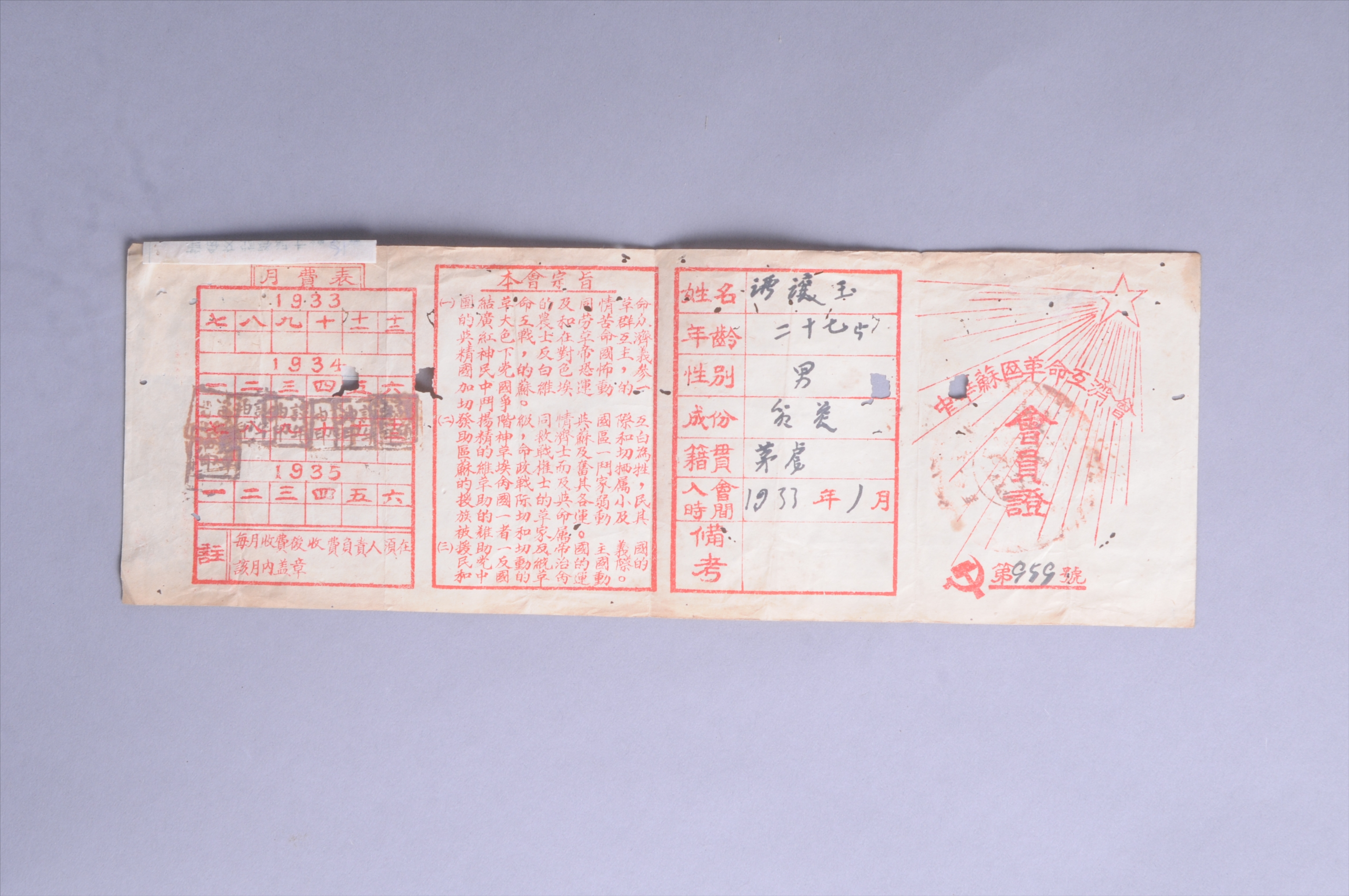 200207★1933年潭酿玉的中华苏区革命互济会会员证