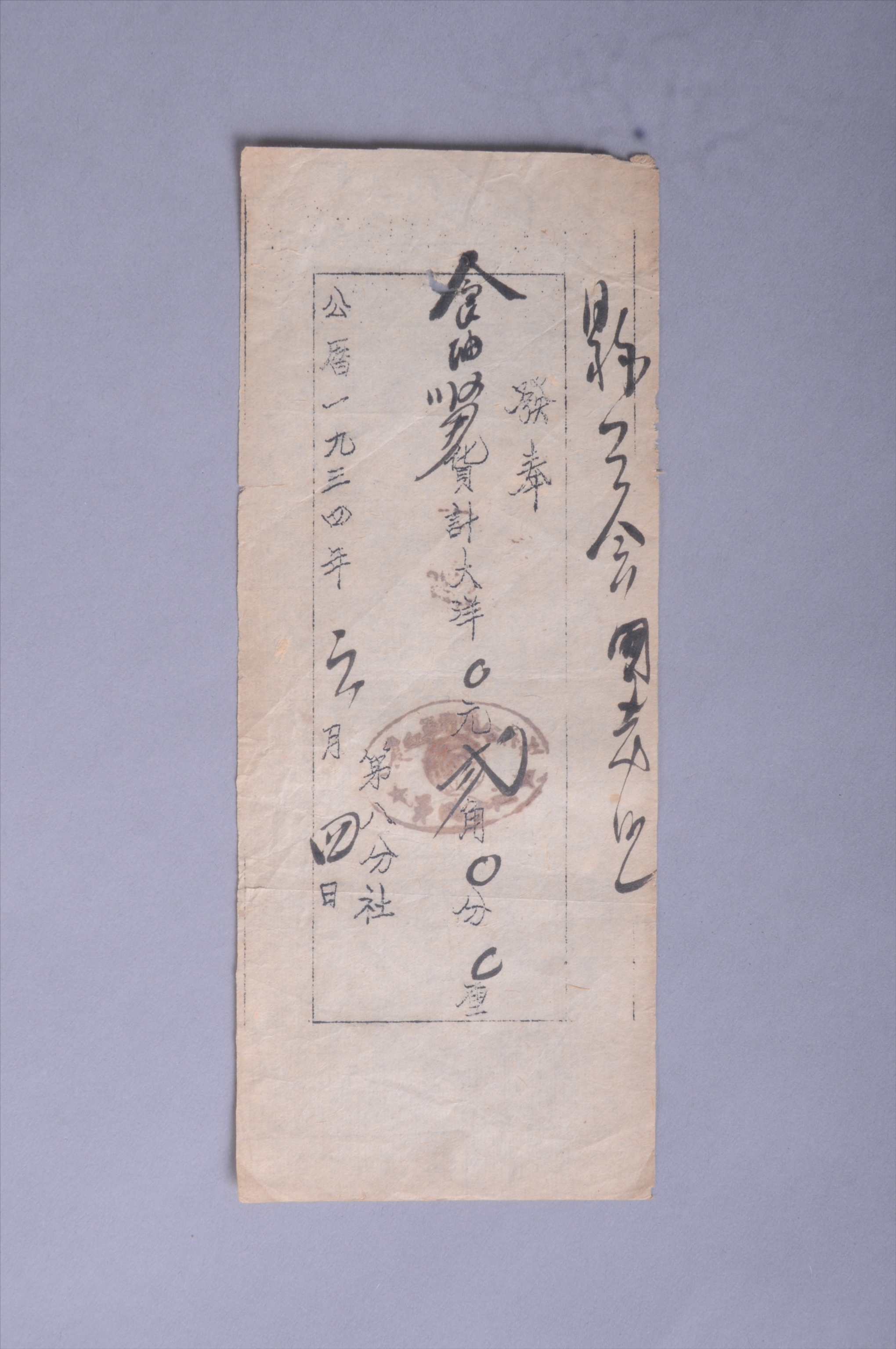 200623★第二次国内革命战争时期工农红军消费合作社第八分社开具给县工会同志食油收条