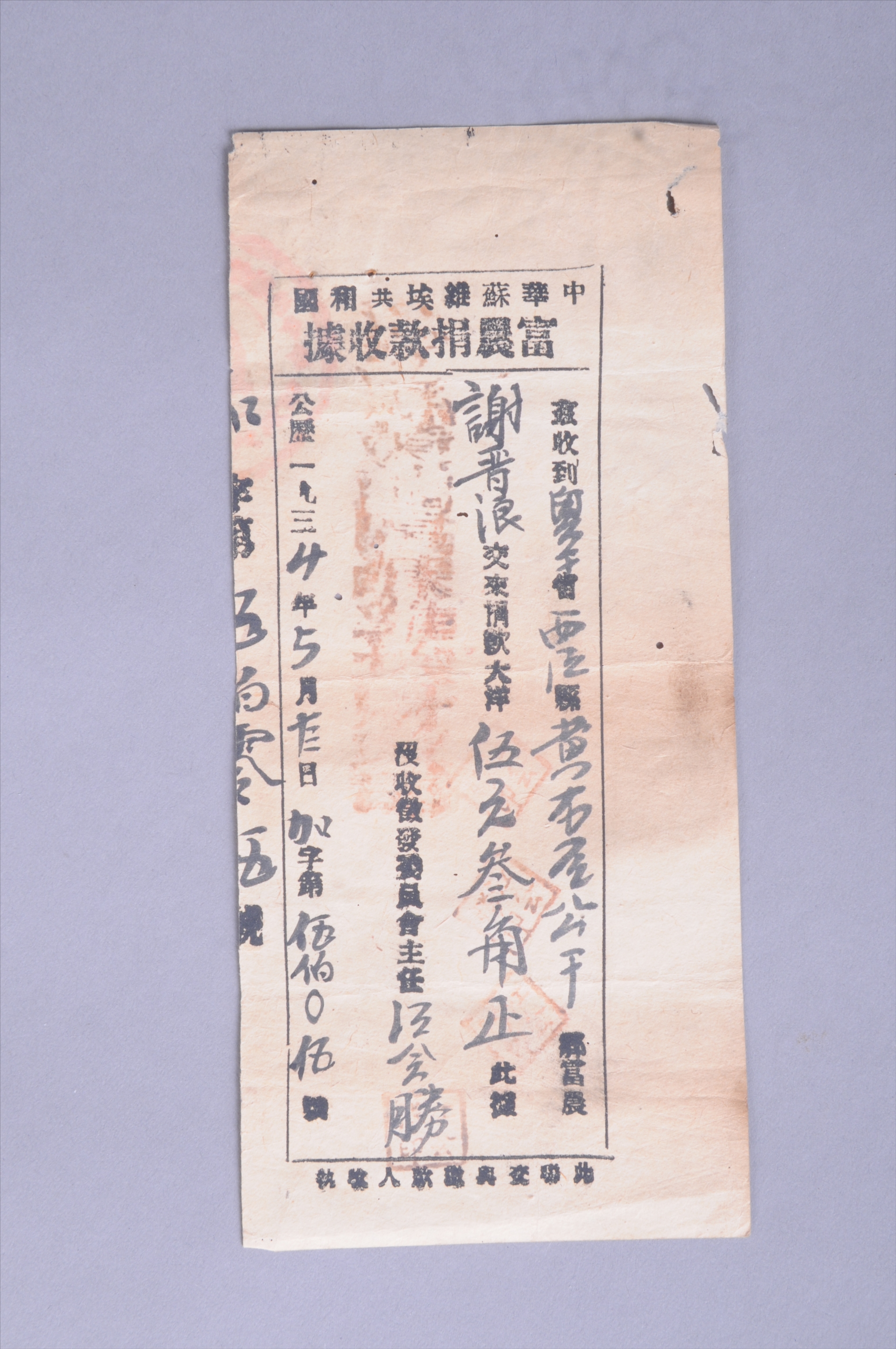 200692★1934年谢晋浪的中华苏维埃共和国富农捐款收据