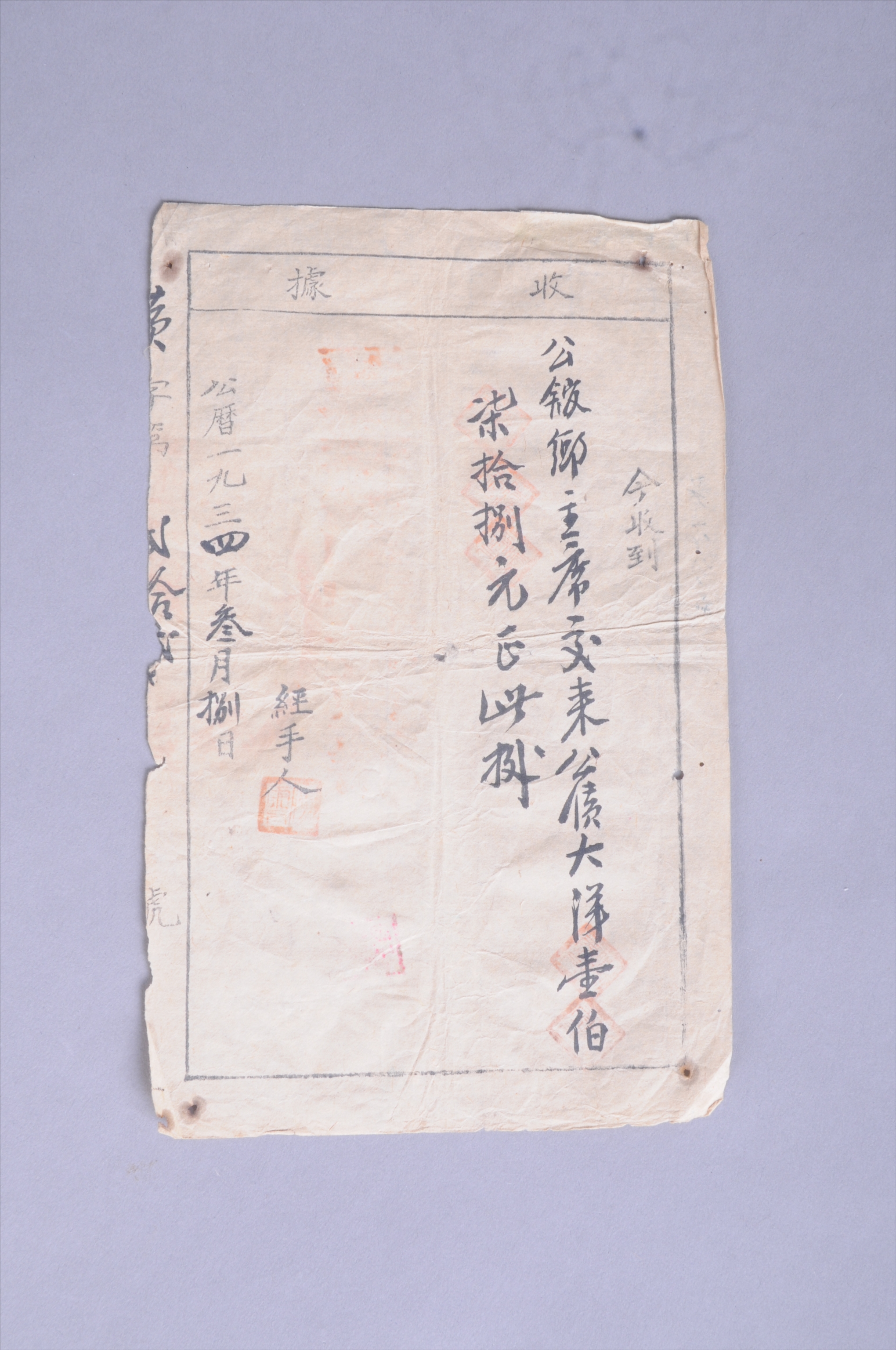 200706★1934年西江县苏维埃政府财政部出具给公馆乡乡主席的公债收据