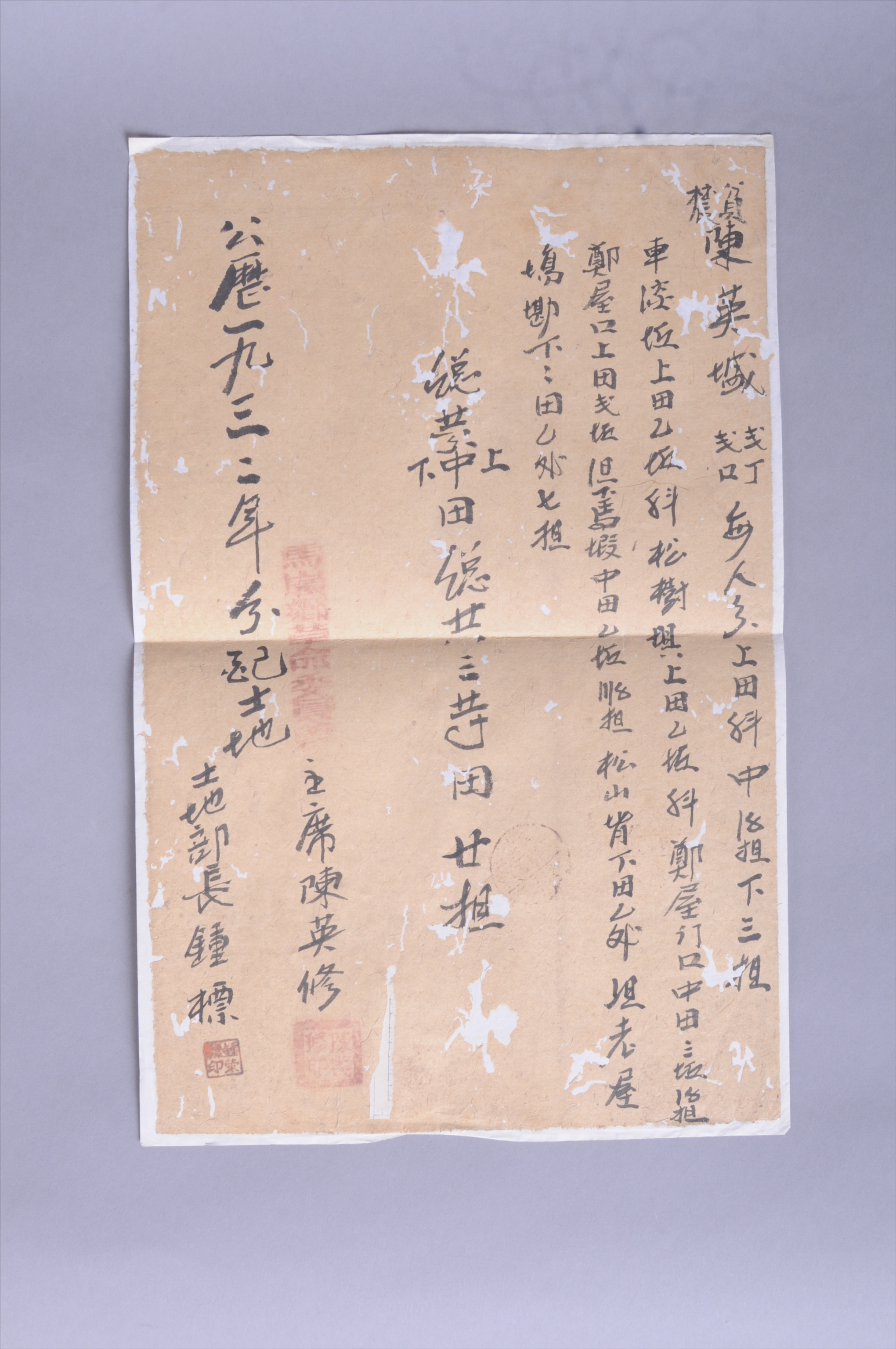 200974★1932年马岭乡革命委员会给贫农陈英□的分田单