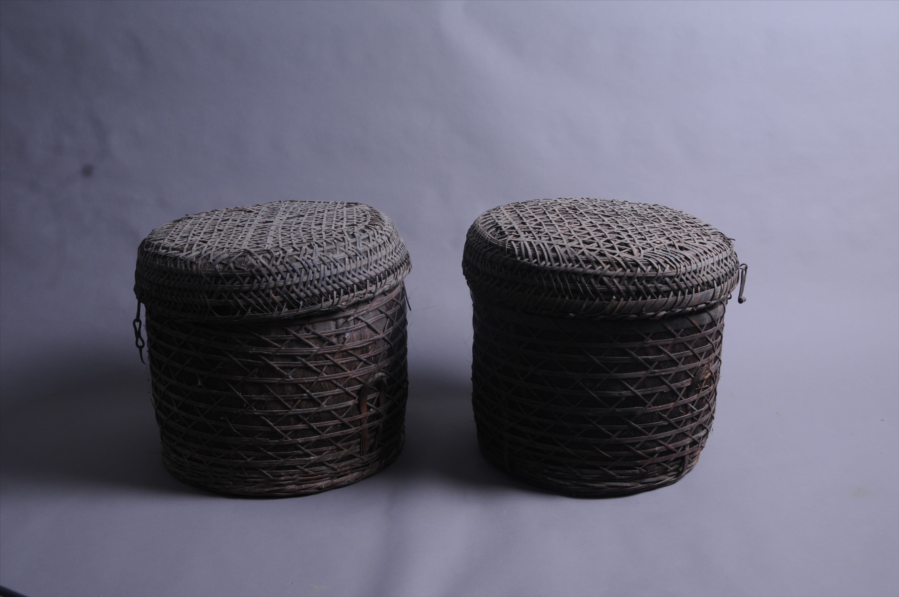 201064★1929年滕代远在于都开展革命活动装文件的带盖圆形竹箩筐