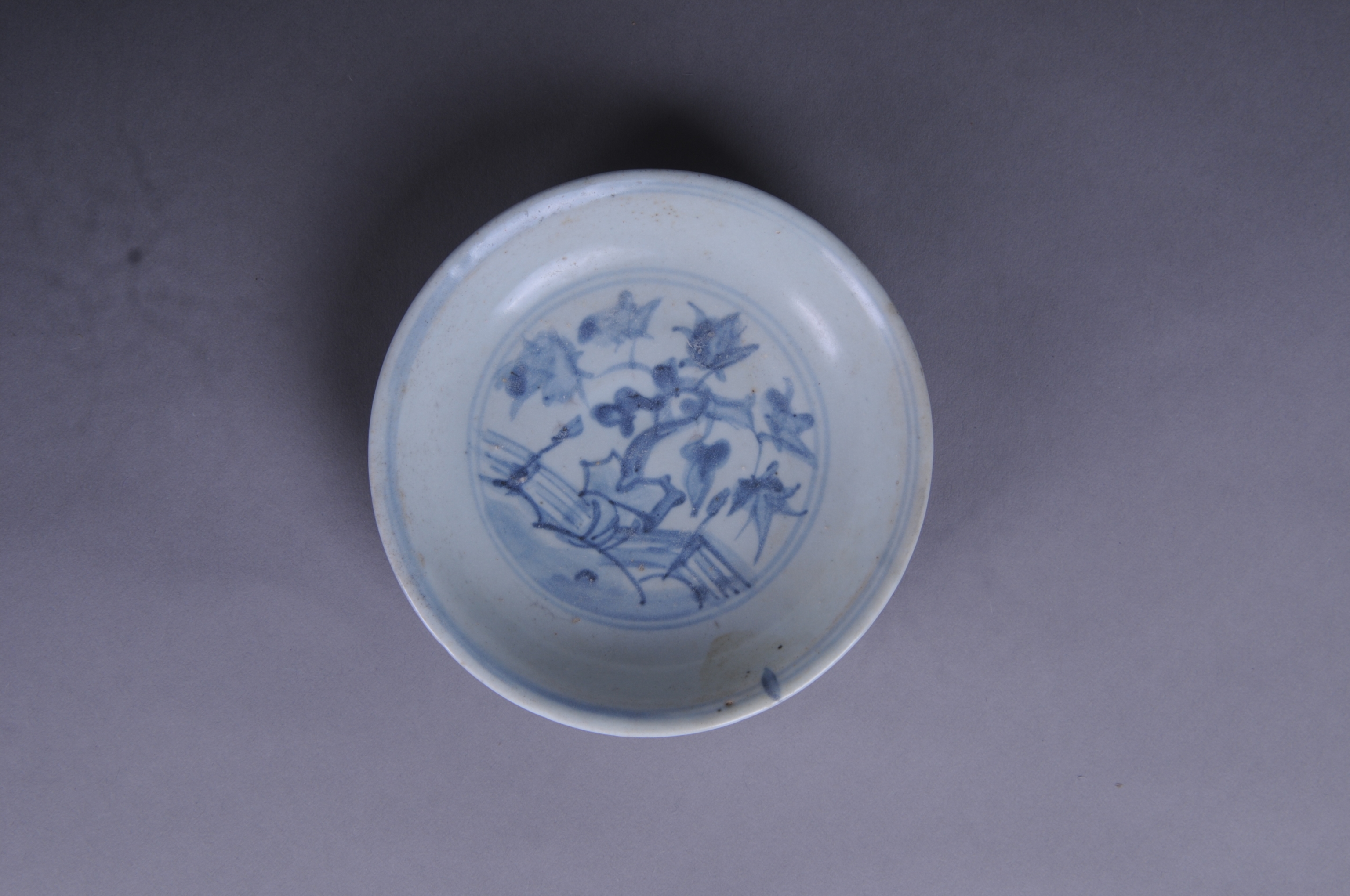 100681清青花树石纹碟
