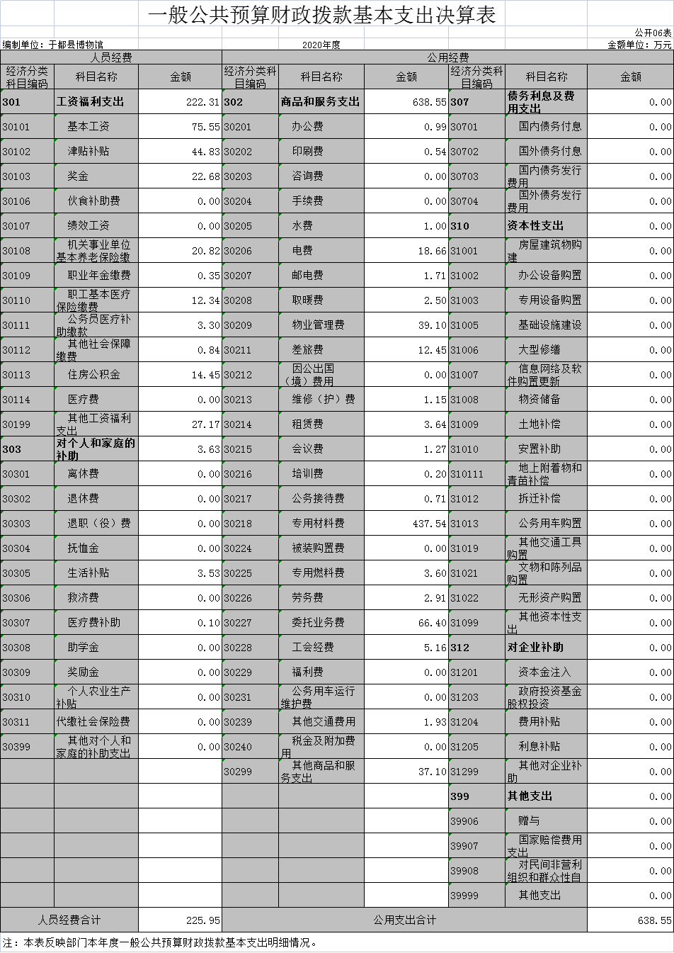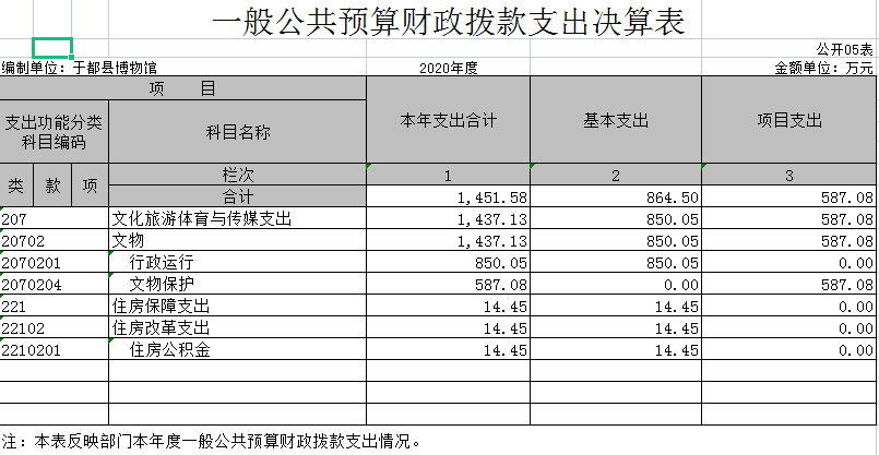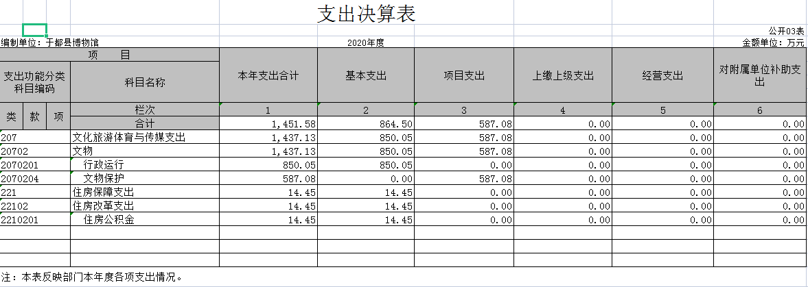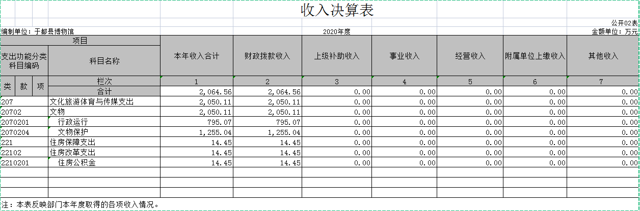 于都县博物馆2020年度部门决算