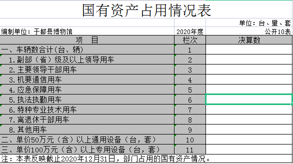 截止2020年12月31日,本部门(单位)国有资产占用情况见公开10表《国有资产占用情况表》。